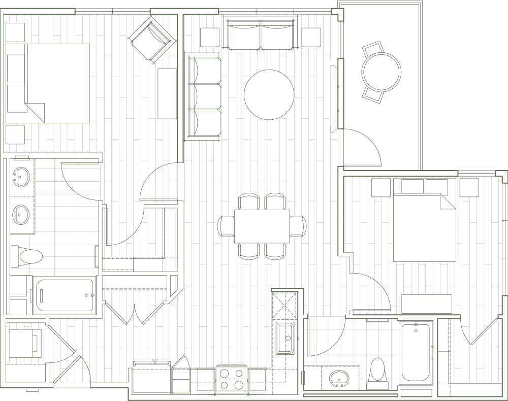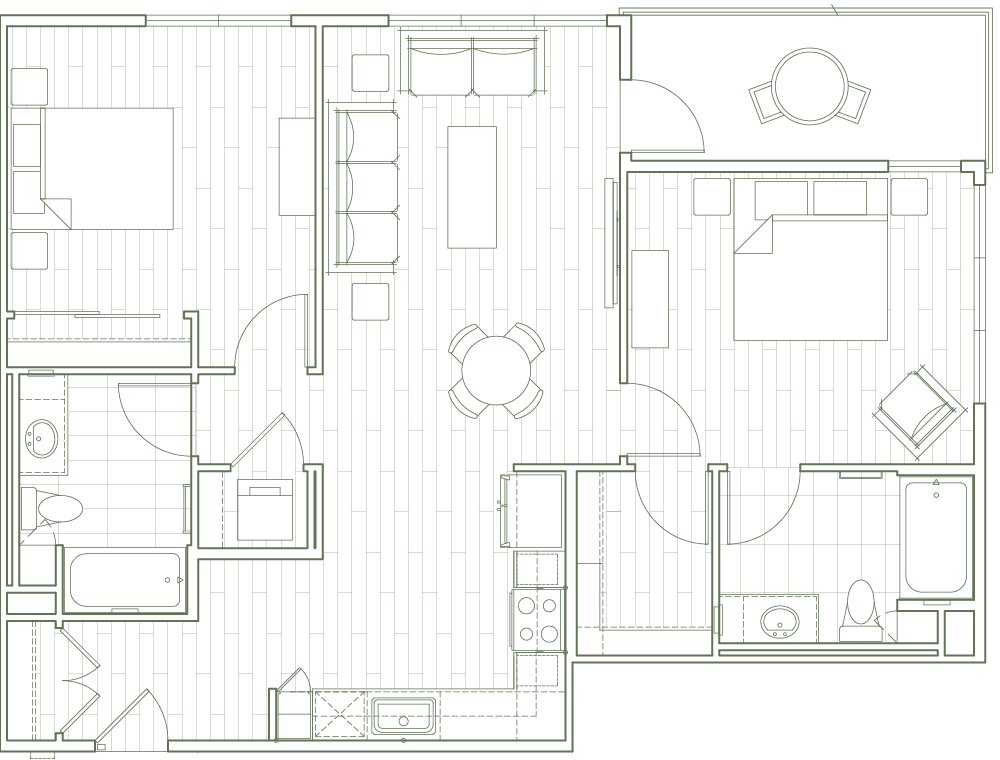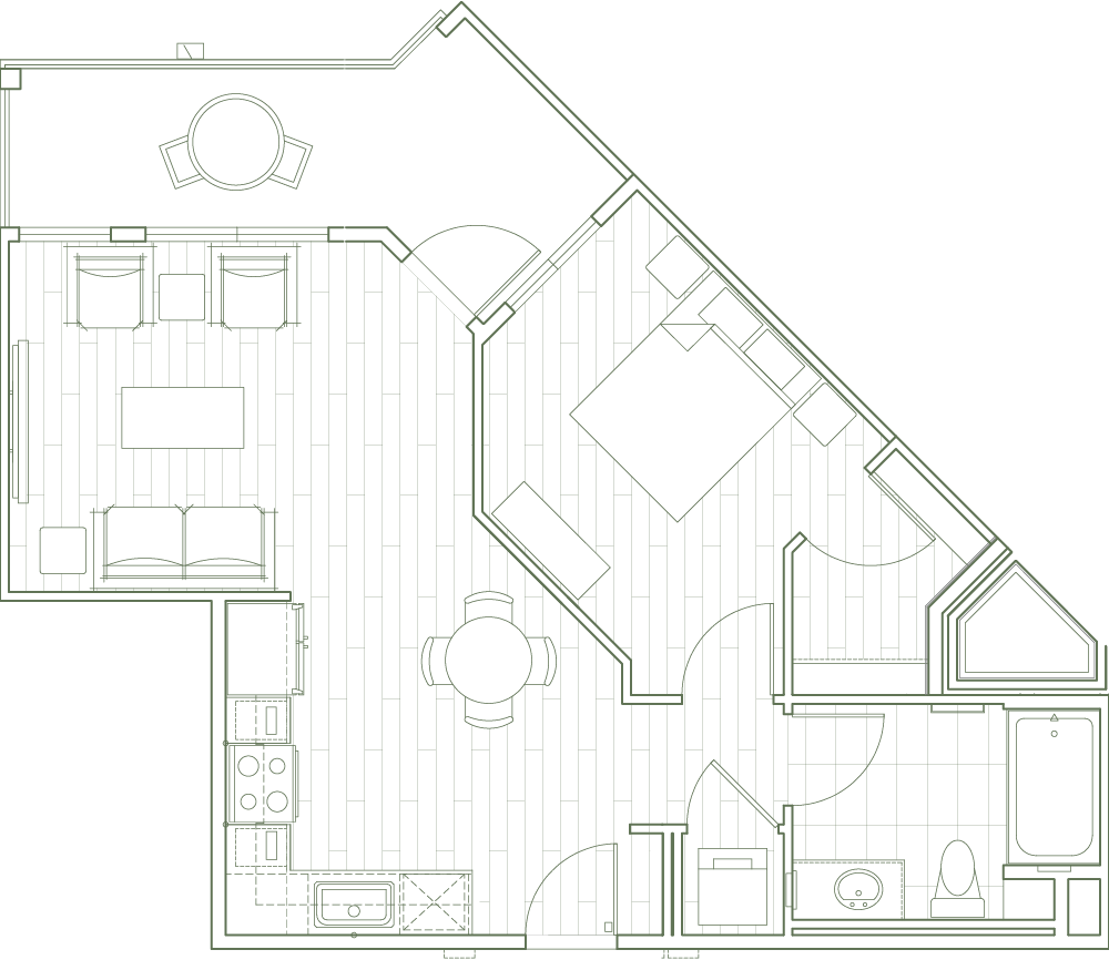1 Bed, 1 Bath, 703 sq ftModel Gallery