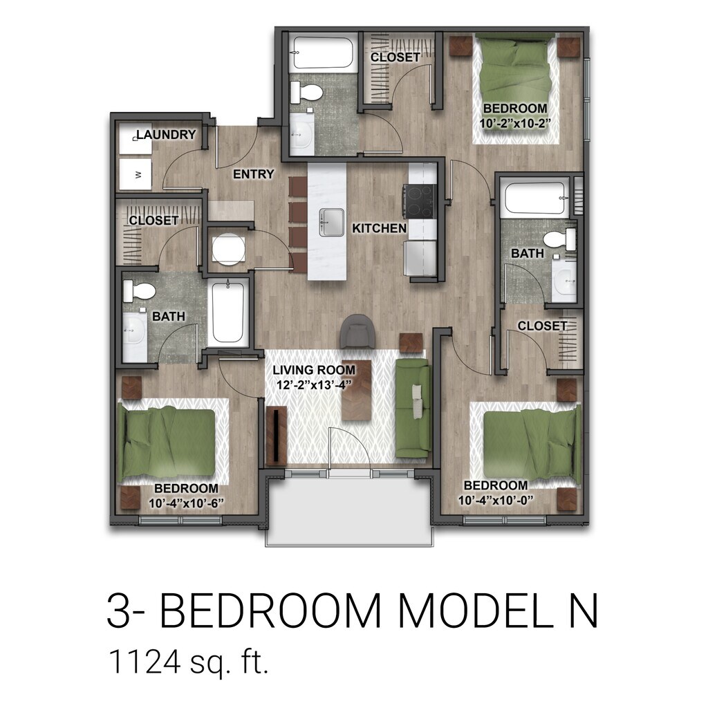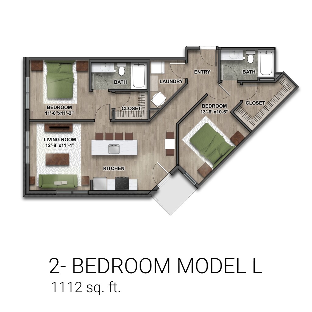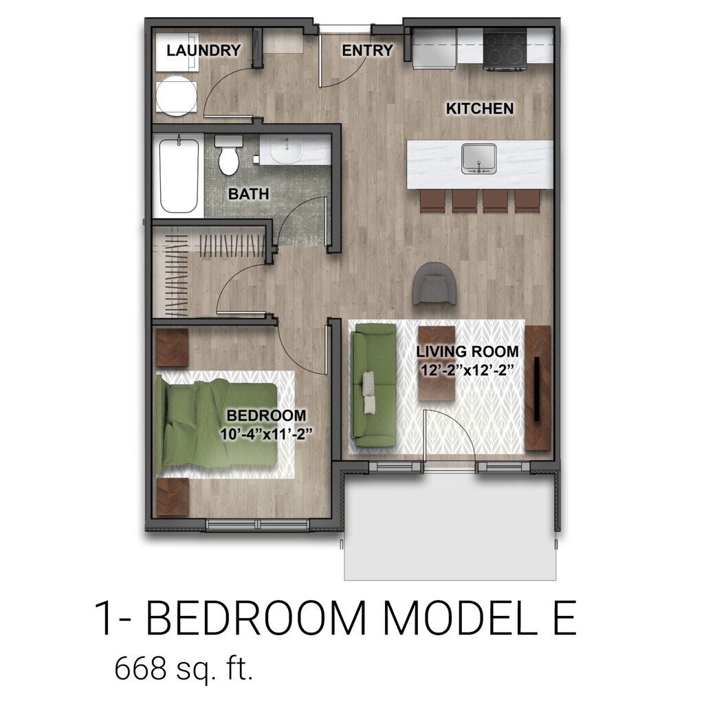 Apartment Model: 1 Bedroom - Model E$1,5301 Bedroom, 1 Bath, 668 sq ftAvailableFloorplansPhotos![]()