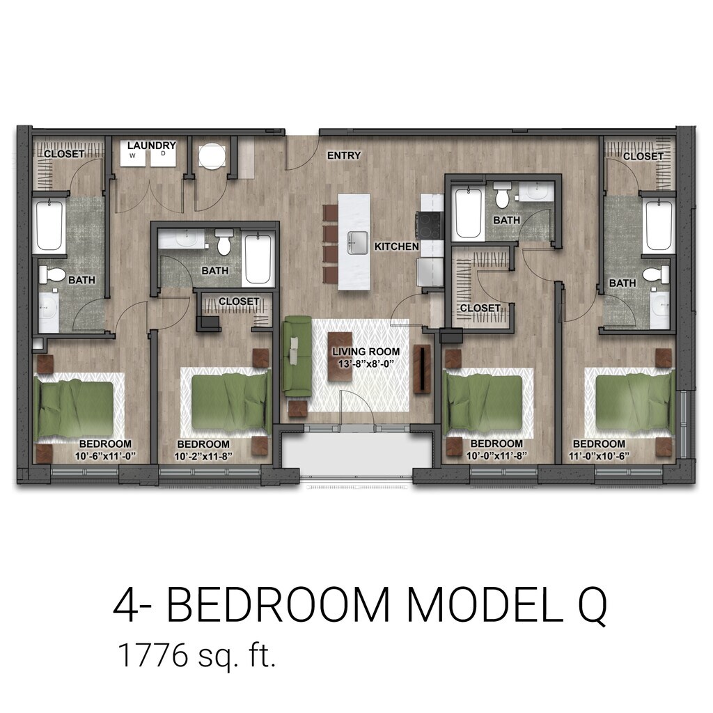 This property’s unique design is a nod to Cincinnati’s art deco roots with modern amenities and finishes. The Eden offers studio, one, two, three, and four-bedroom apartments and features in-unit laundry, as well as private bathrooms off of each bedroom. The community boasts amenities such as a pool, outdoor seating, fitness center, yoga room, and a multi-level clubhouse with study rooms. The Eden is situated minutes from UC’s main campus and UC Medical Campus. designed with everything you need!