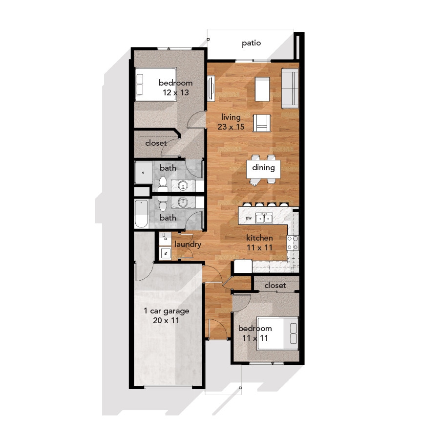 2 Beds, 2 Baths, 992 sq ftAvailable NowCheapest 2 BedroomThis is the cheapest 2 Bedroom at this PropertyModel Gallery
