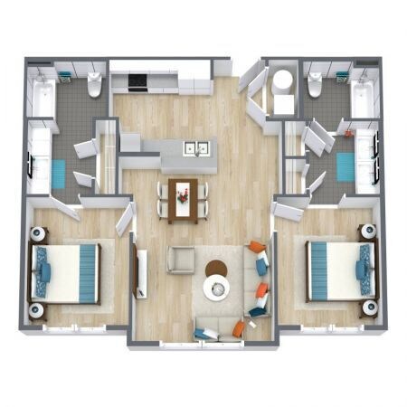 2 Beds, 2 Baths, 532 sq ftLargest 2 BedroomThis is the largest 2 Bedroom at this PropertyModel Gallery
