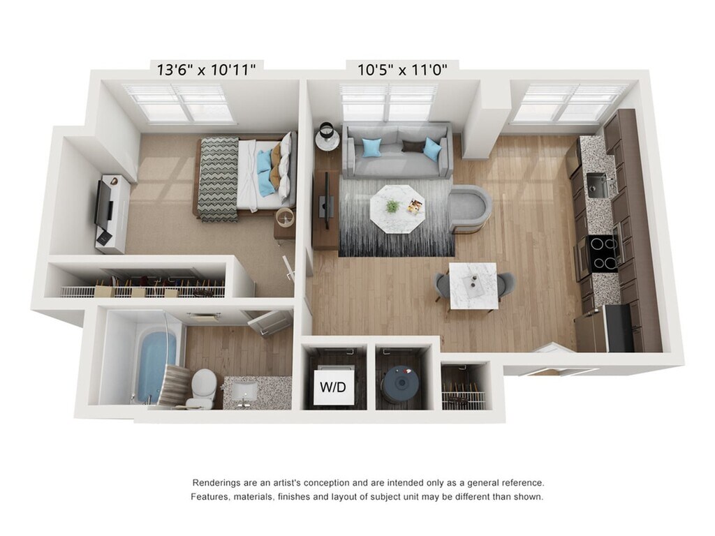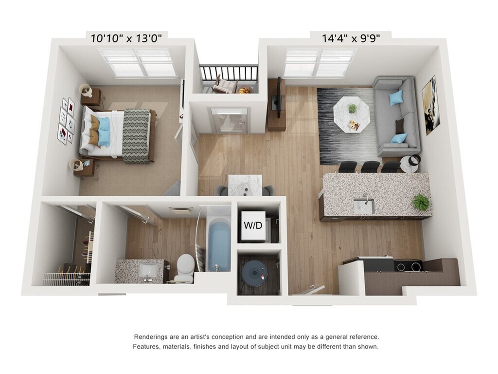 1 Bed, 1 Bath, 590 sq ftModel Gallery