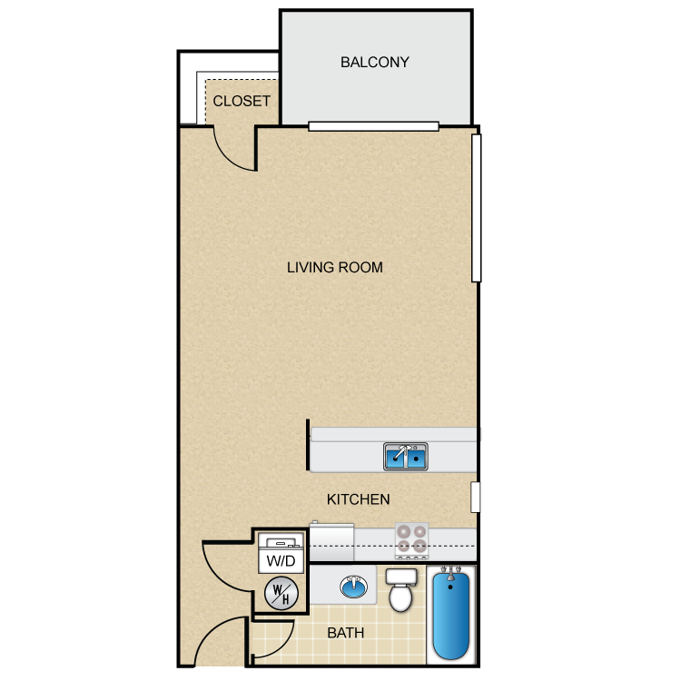 Studio, 1 Bath, 525 sq ftAvailable NowAvailability Details
