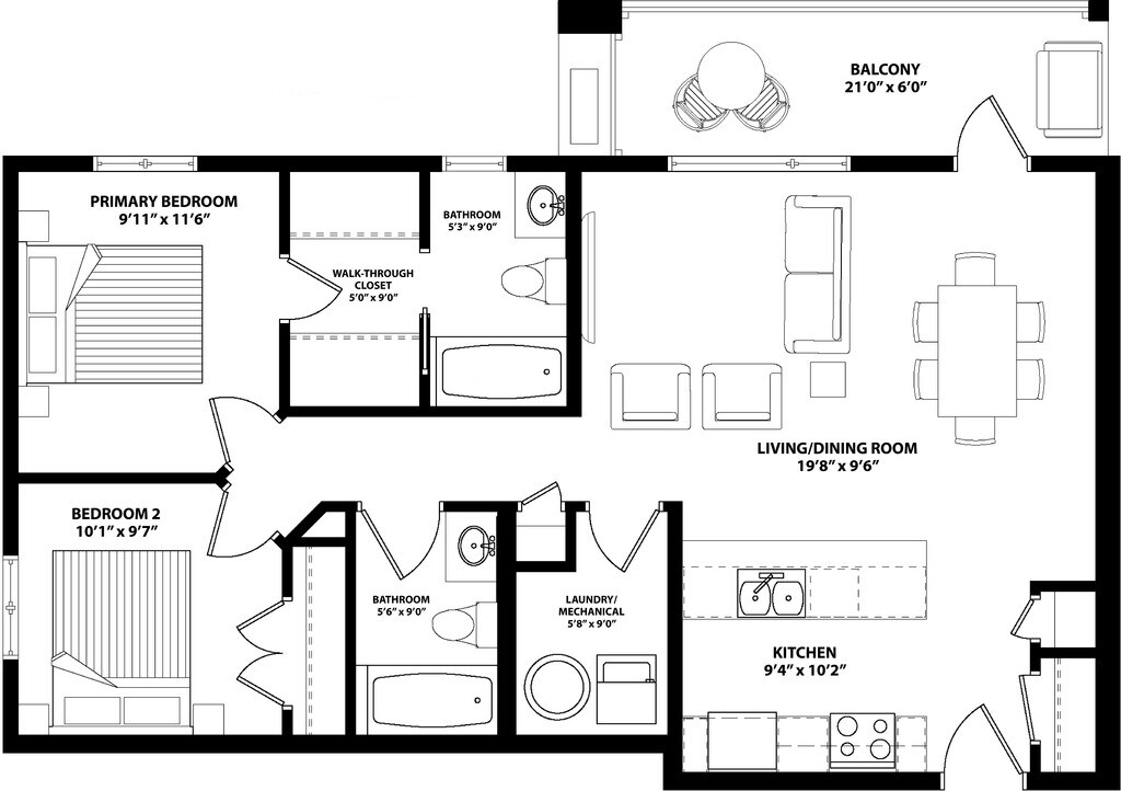 2 Beds, 2 Baths, 970 sq ftLargest 2 BedroomThis is the largest 2 Bedroom at this PropertyModel Gallery