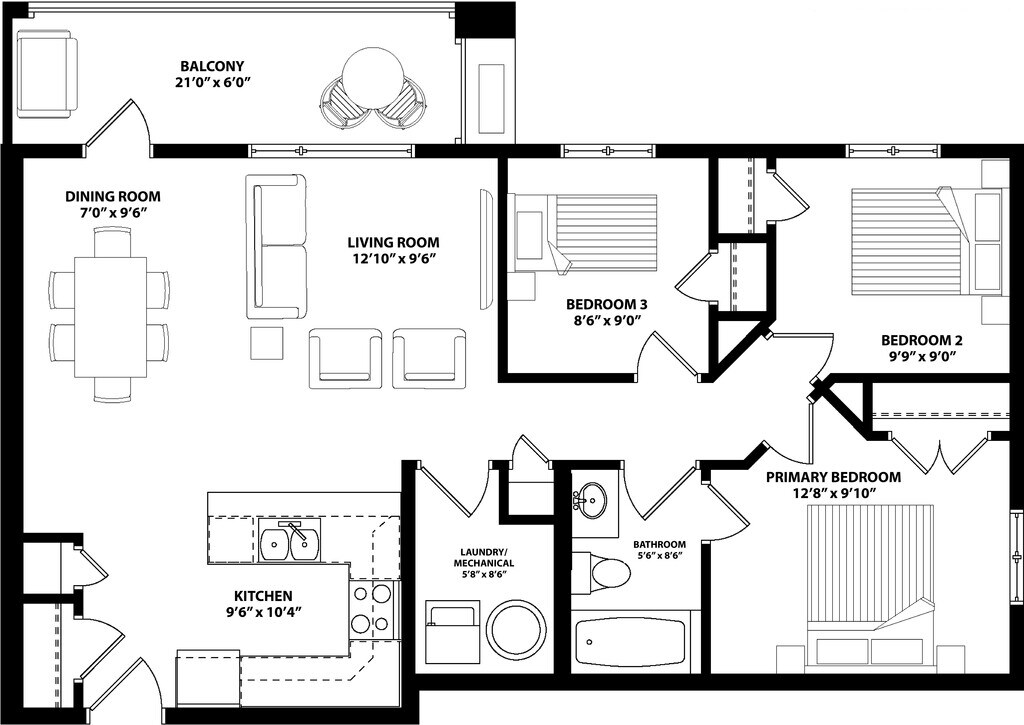 Apartment Model: Franklin (h)3 Bedroom, 1 Bath, 966 sq ftUnavailable![]()