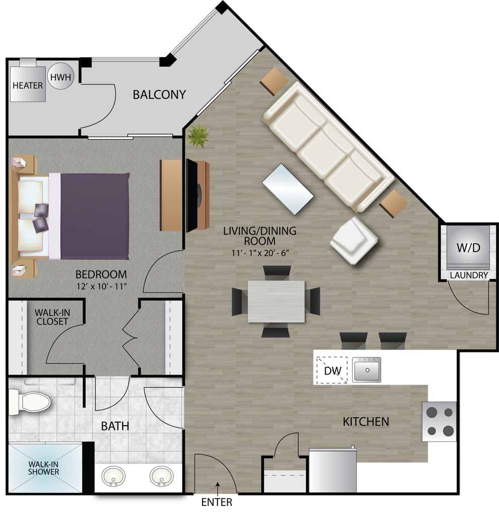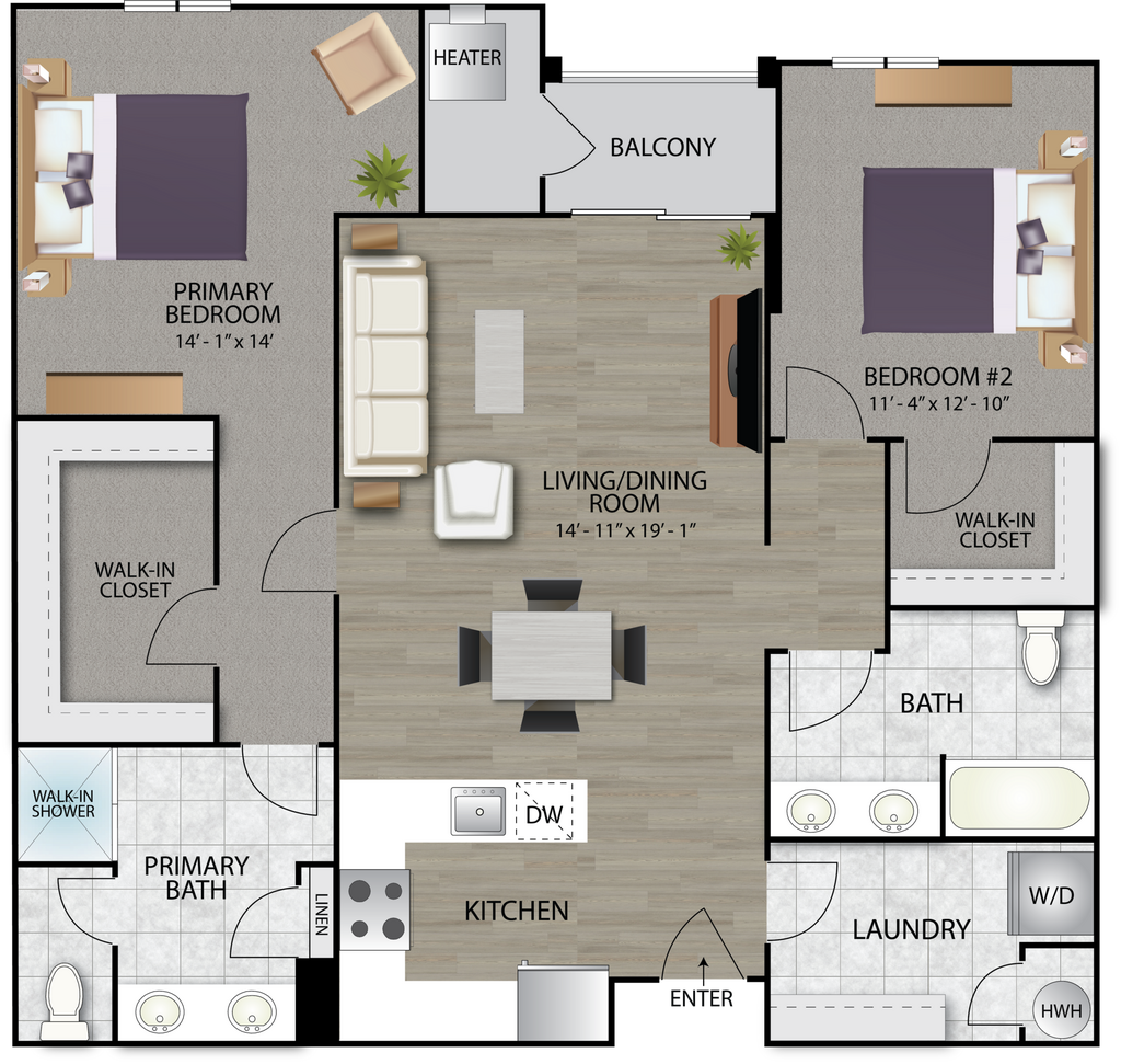 Apartment Model: A02From $2,4511 Bedroom, 1 Bath, 814 sq ftAvailable Now![]()