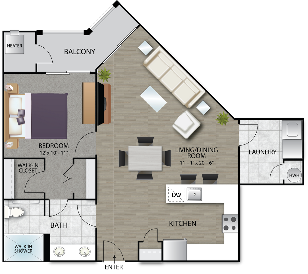 A06 - Floorplan 1 Apartment Unit: 138Apartment Model: A06$2,5301 Bedroom, 1 Bath, 854 sq ftAvailable NowFloorplan A07