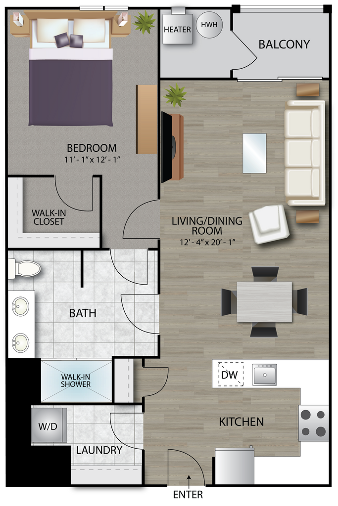 A02 - Floorplan 1 Apartment Unit: 460Apartment Model: A02$2,5611 Bedroom, 1 Bath, 814 sq ftAvailable NowFloorplan A03