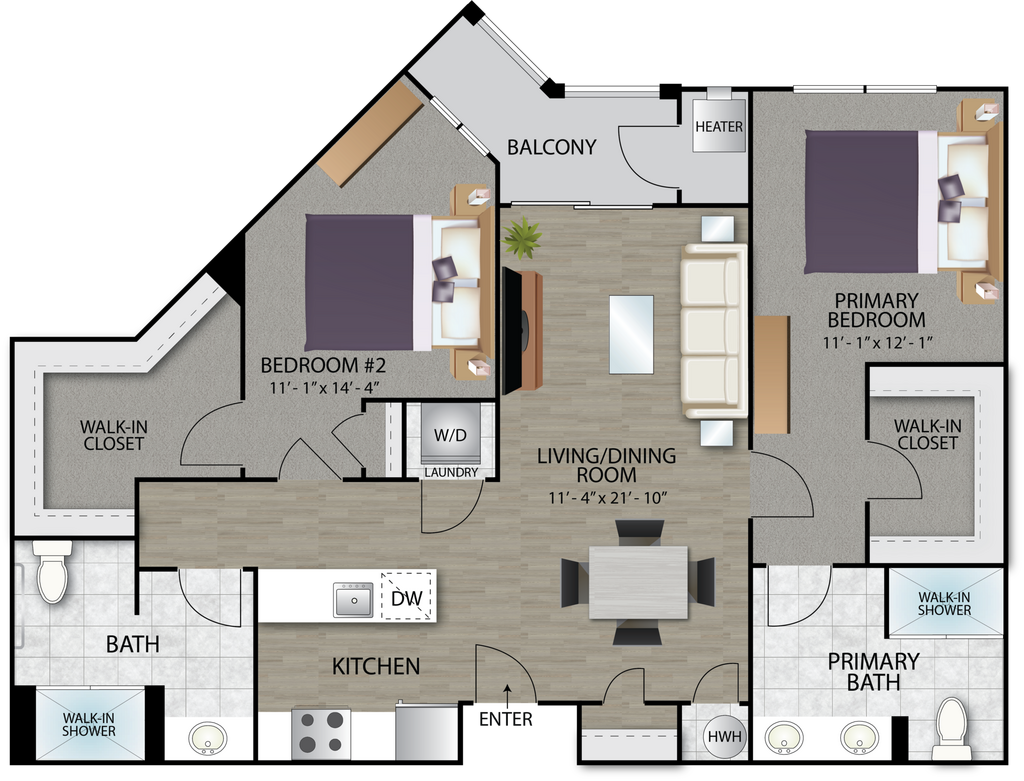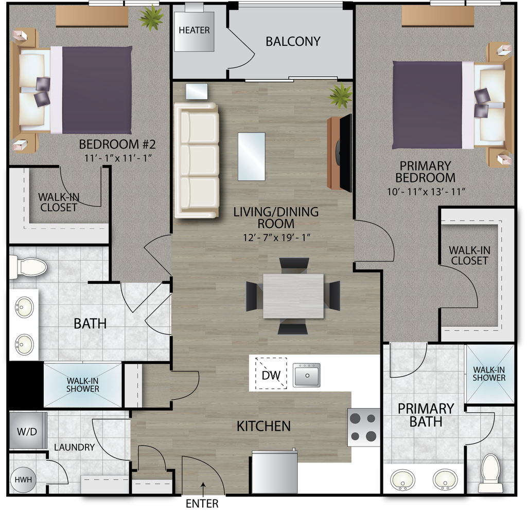 Apartment Model: A11From $2,5101 Bedroom, 1 Bath, 878 sq ftAvailable Now![]()
