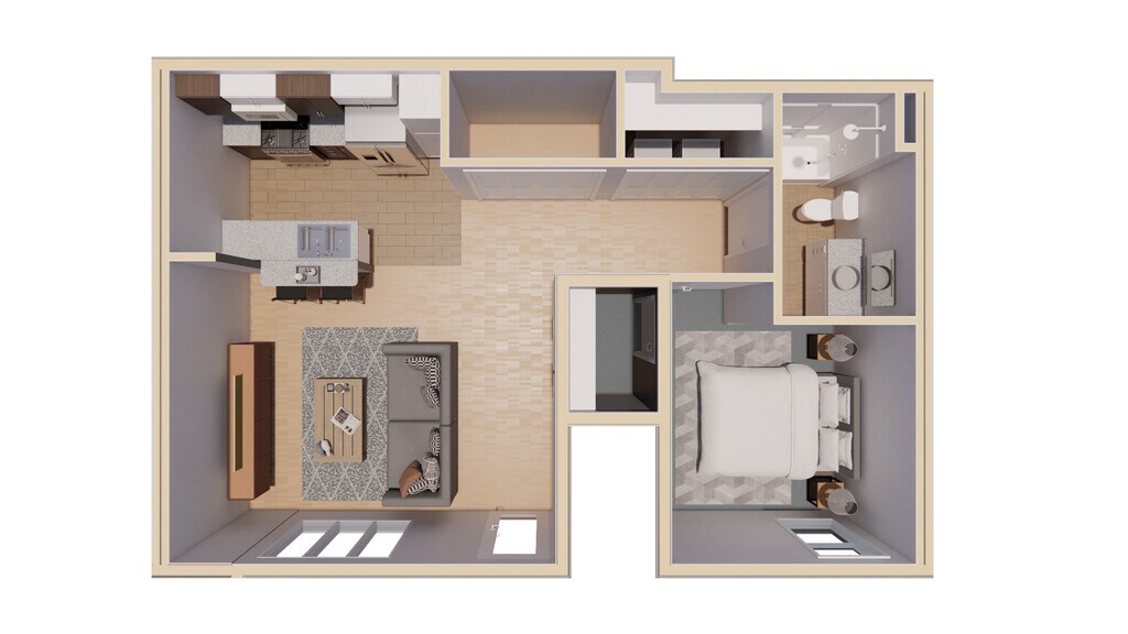 1 Bed, 1 Bath, 666 sq ftModel Gallery