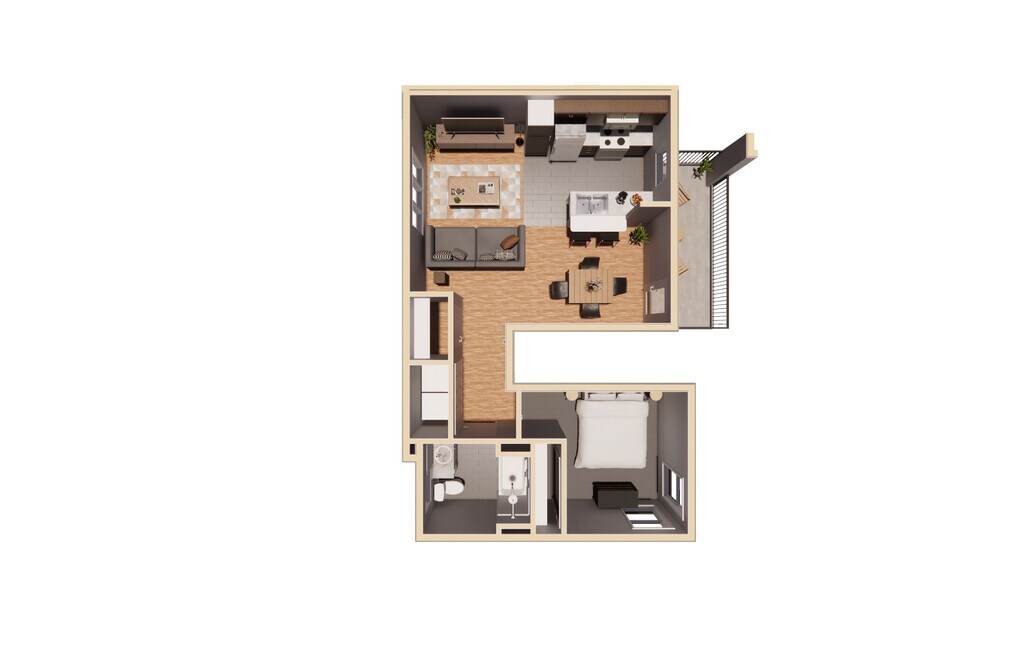 1 Bed, 1 Bath, 689 sq ftModel Gallery