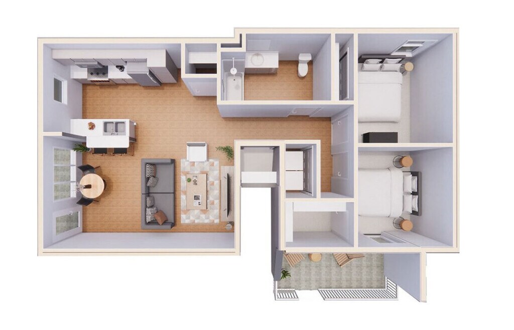 2 Beds, 2.5 Baths, 1180 sq ftAvailable NowLargest 2 BedroomThis is the largest 2 Bedroom at this PropertyModel Gallery