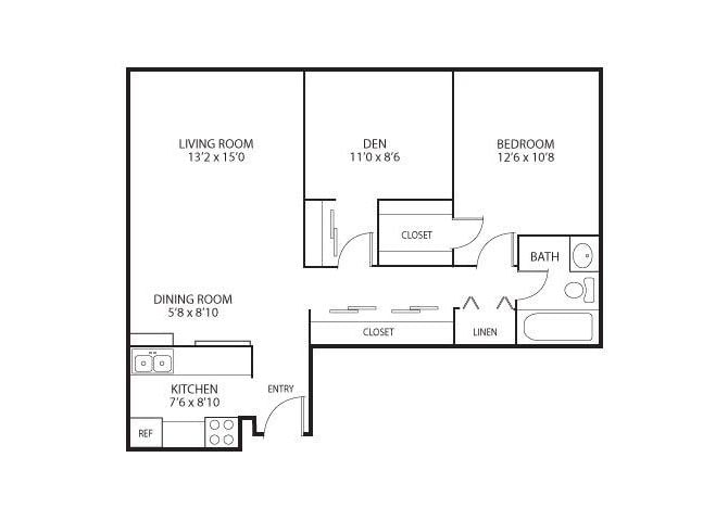 Apartment Model: Arneson 1 DenCall For Rates1 Bedroom, 1 Bath, 850 sq ftUnavailableFloorplansPhotosArneson 1 Den - Image 1 Arneson 1 Den - Image 2 Arneson 1 Den - Image 3 Arneson 1 Den - Floorplan 4 2 Bedrooms