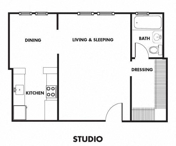 Studio | 1 Bath - EFF - Floorplan 1 Studio | 1 Bath - SA