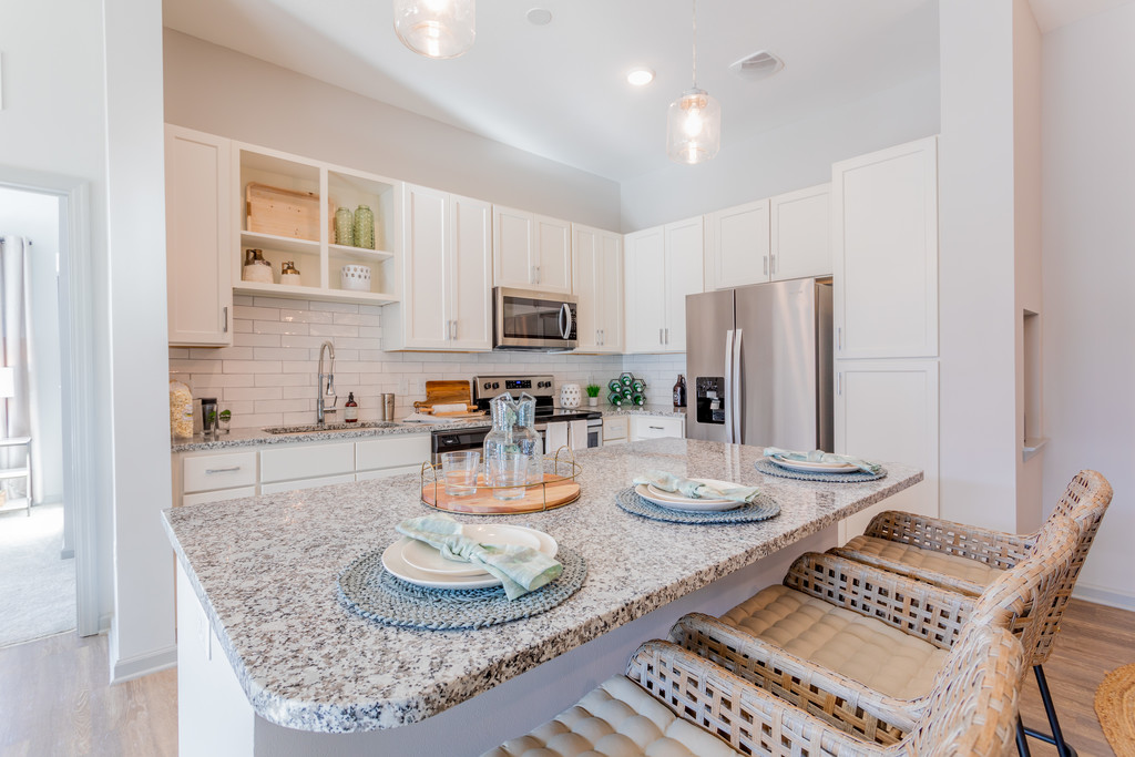 Welcome to The Edison Apartments, a veritable gem found under the Florida sun. Our apartments for rent in Fort Myers have the look and feel of a five-star resort, so your everyday life can resemble a vacation. All while connecting you to work and play opportunities in the big city. Move into the one, two, or three-bedroom residence that speaks to you the mostwe even have carriage homes with attached garages.Take advantage of spacious, open-concept layouts that feature some of the latest comforts. Among them, youll enjoy gourmet kitchens with side-by-side fridges, stainless steel appliances, granite countertops, and full-sized washers and dryers. Other intricate details include luxury wood-style flooring, designer ceramic tile backsplashes, ceiling fans, and air conditioners. In addition, some floor plans feature extra-large closets, private or semi-private balconies, elevator access, and captivating views of trees, the pond, or our pool.