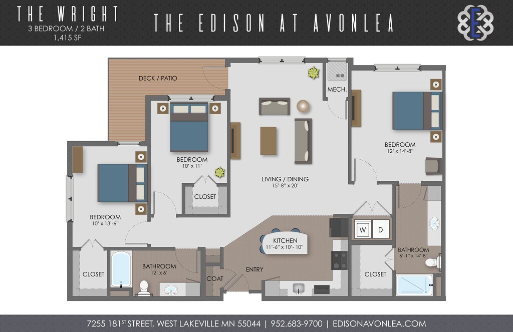 1 Bedroom to 3 Bedroom Apartments at The Edison at Avonlea currently range from $1,540 to $1,945