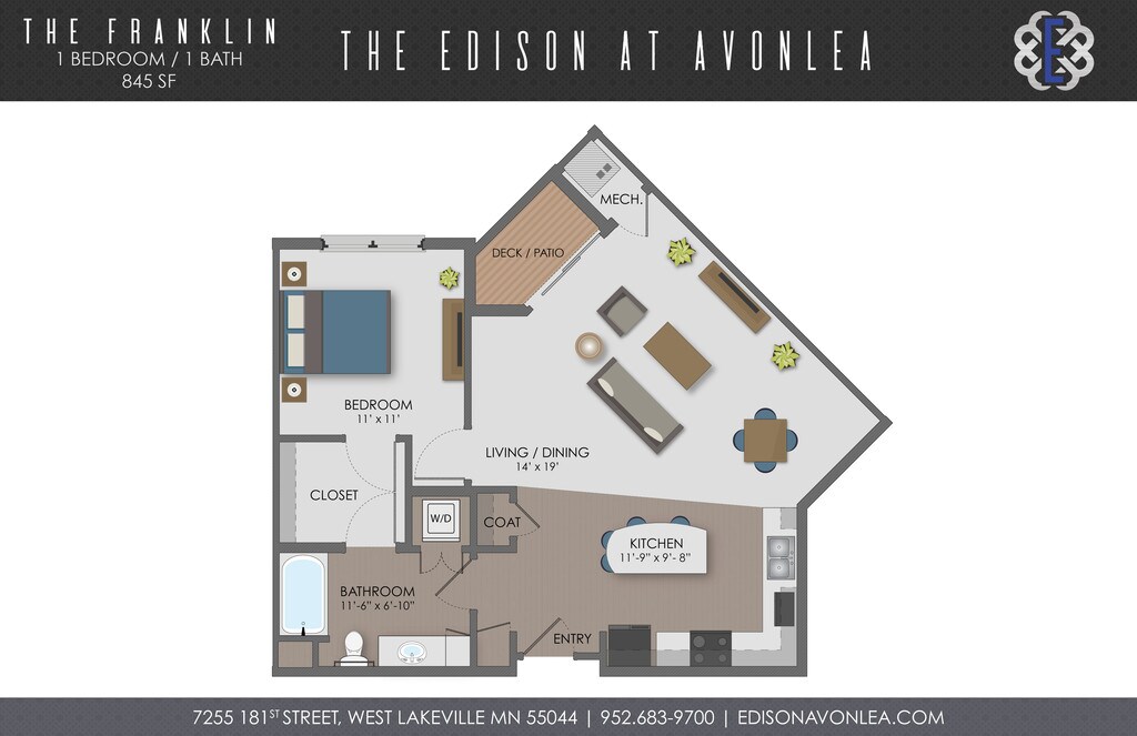 Apartment Model: FRANKLINCall For Rates1 Bedroom, 1 Bath, 845 sq ftUnavailable![]()