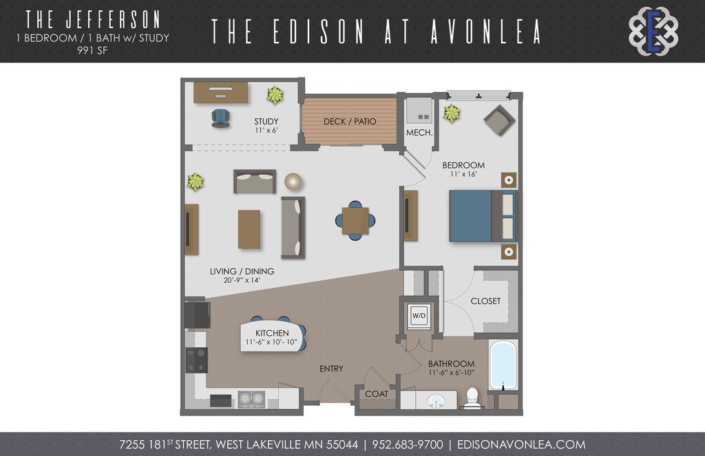 The Edison at Avonlea offers 1 to 3 Bedroom apartments starting from $1,540 and having 717–1,415 sq ft. Here is the current pricing and availability: