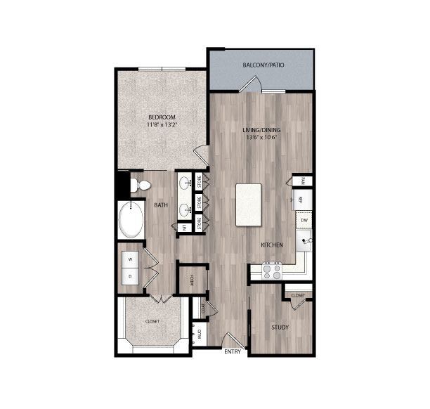 Apartment Model: A5 with Study1 Bedroom, 1 Bath, 930 sq ftAvailable November 24, 2025![]()