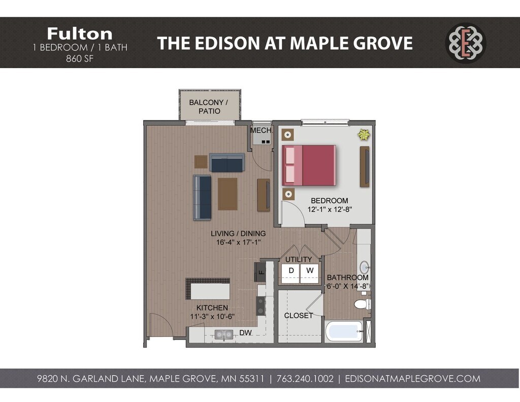 Apartment Model: FultonCall For Rates1 Bedroom, 1 Bath, 860 sq ftUnavailable![]()