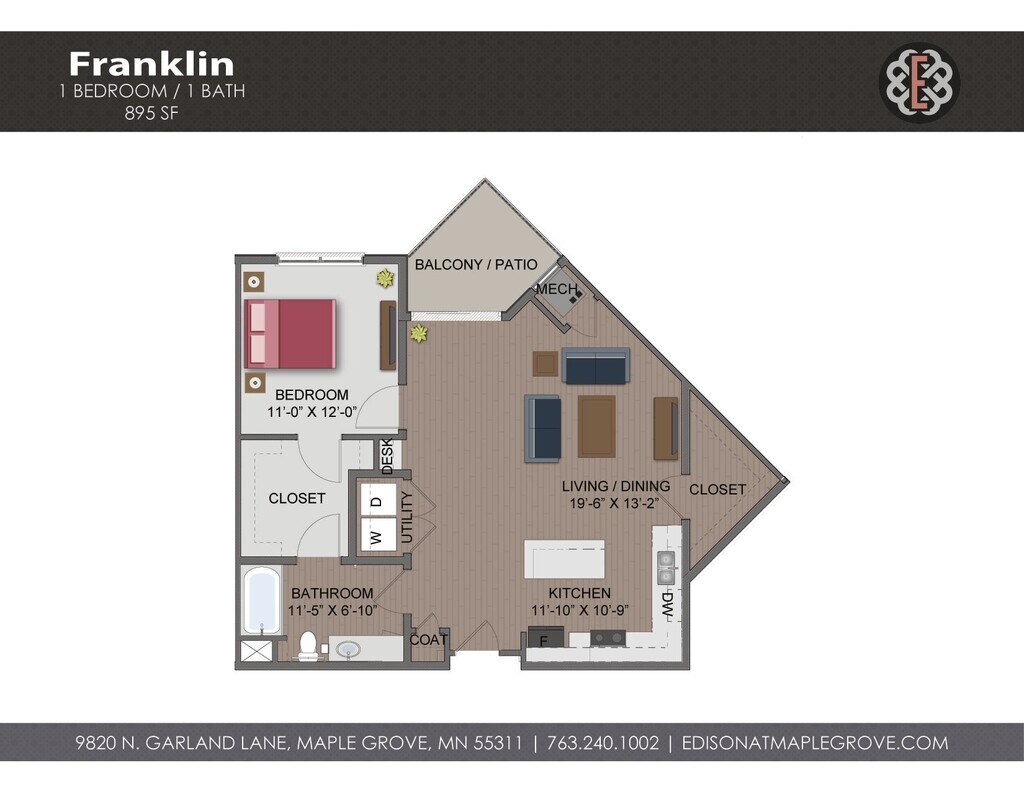 Apartment Model: FranklinCall For Rates1 Bedroom, 1 Bath, 895 sq ftUnavailable![]()