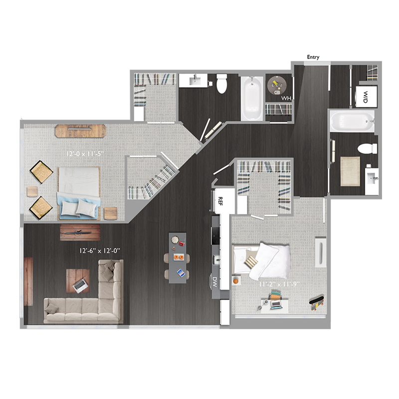 2 Beds, 2 Baths, 1147 sq ftAvailable NowLargest 2 BedroomThis is the largest 2 Bedroom at this PropertyModel Gallery