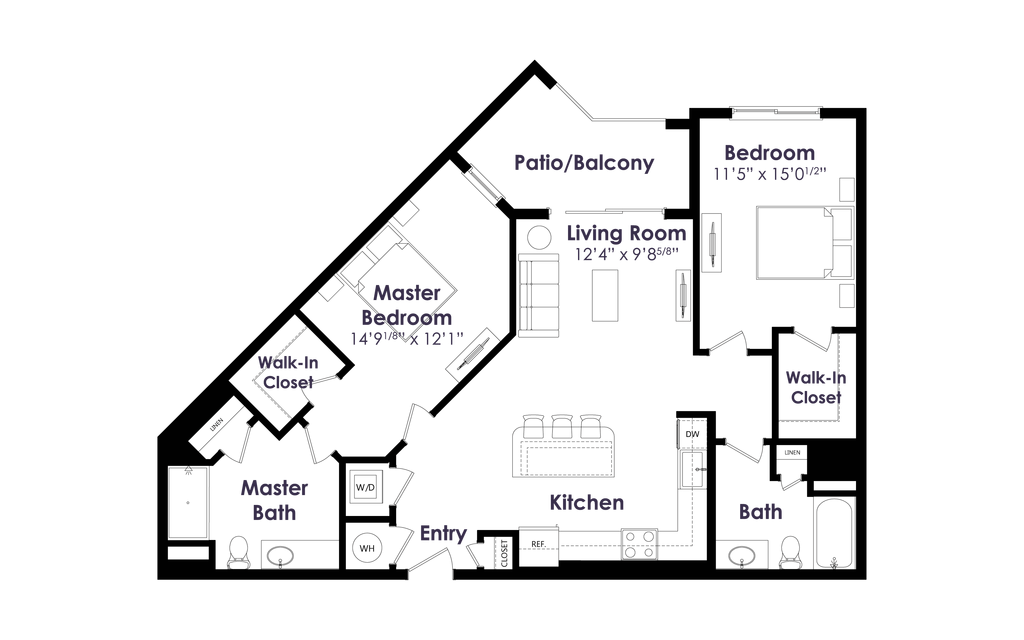 1 Bed, 1.5 Baths, 1056 sq ftAvailable NowLargest 1 BedroomThis is the largest 1 Bedroom at this PropertyModel Gallery