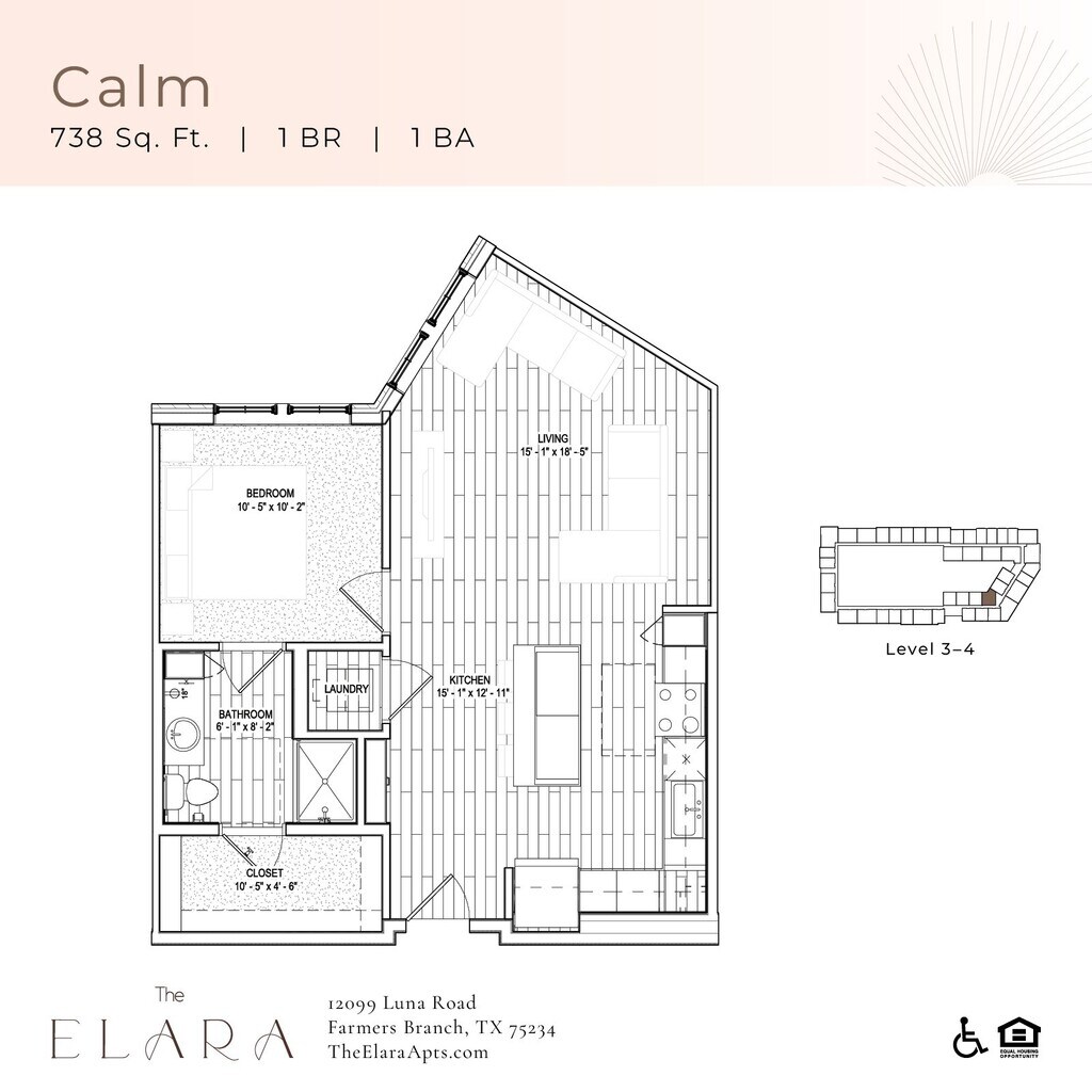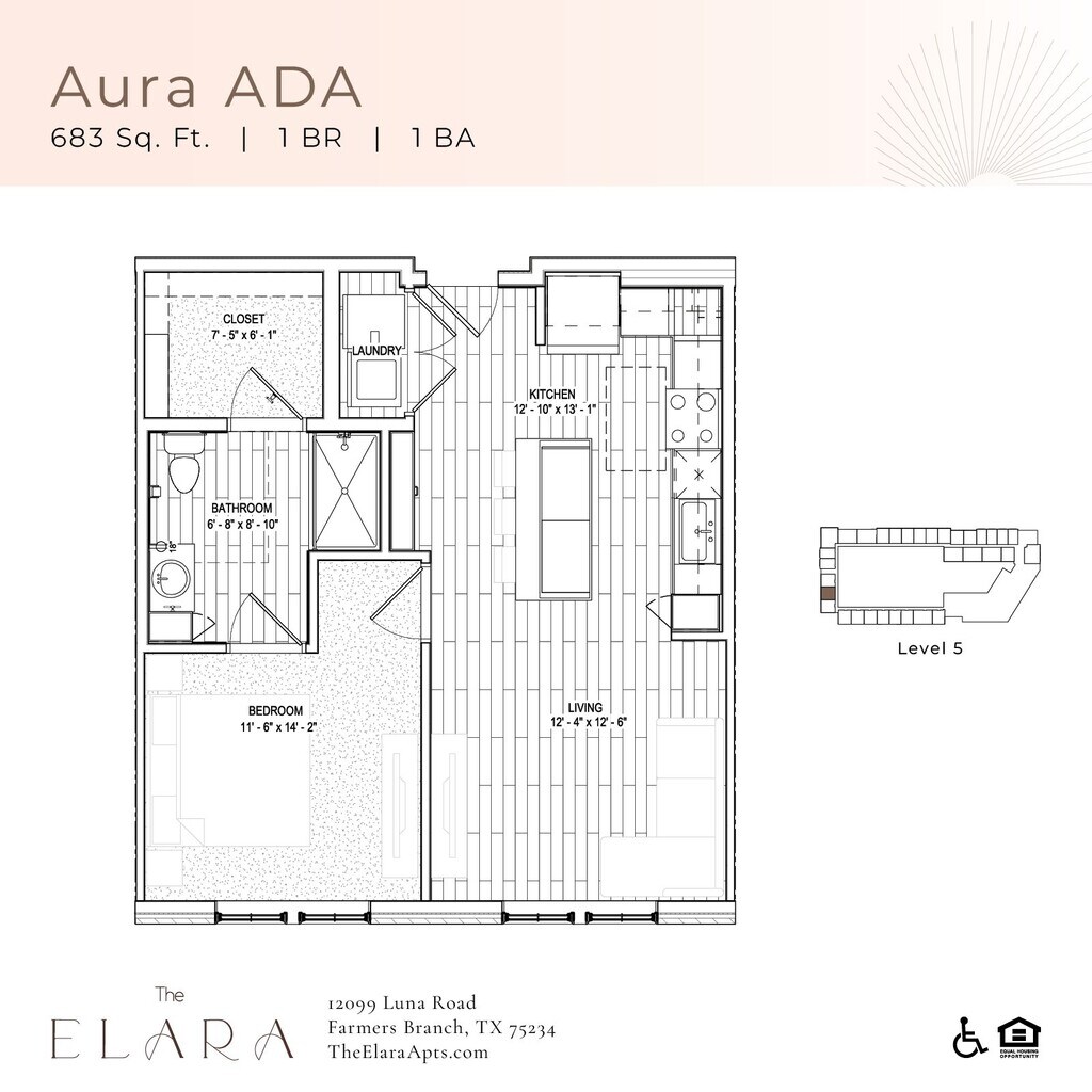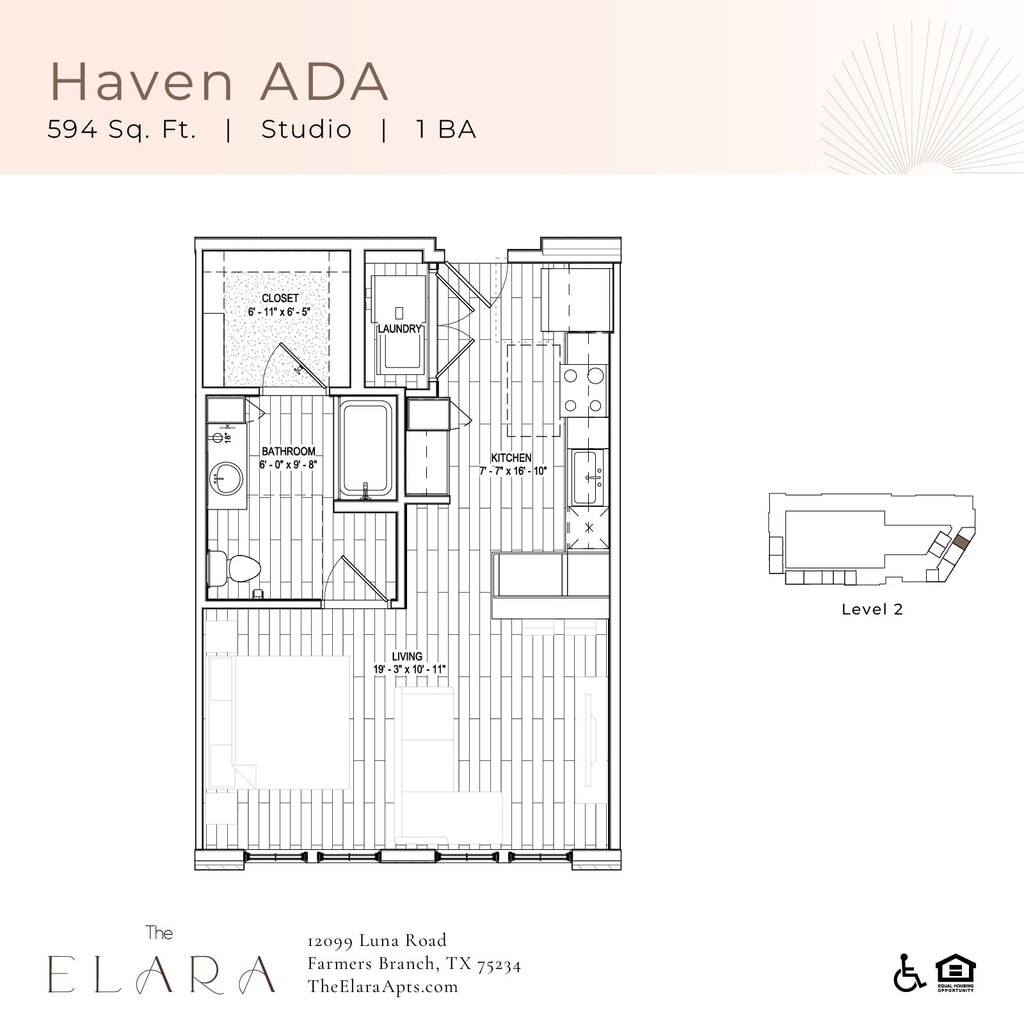 Haven ADA - Floorplan 1 Apartment Unit: 259Apartment Model: Haven ADA$1,343Studio, 1 Bath, 594 sq ftAvailable February 20, 2026Haven