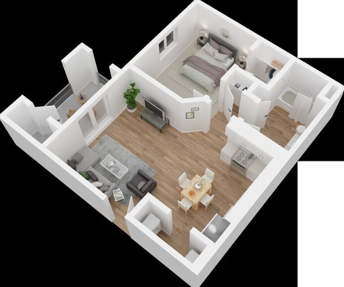 1 Bed, 1 Bath, 722 sq ftModel Gallery