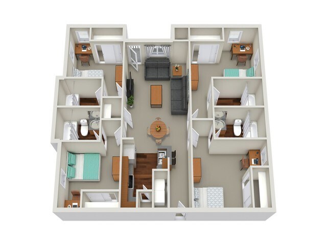 4 Beds, 4 Baths, 1244-1329 sq ftLargest 4 BedroomThis is the largest 4 Bedroom at this PropertyAvailability Details