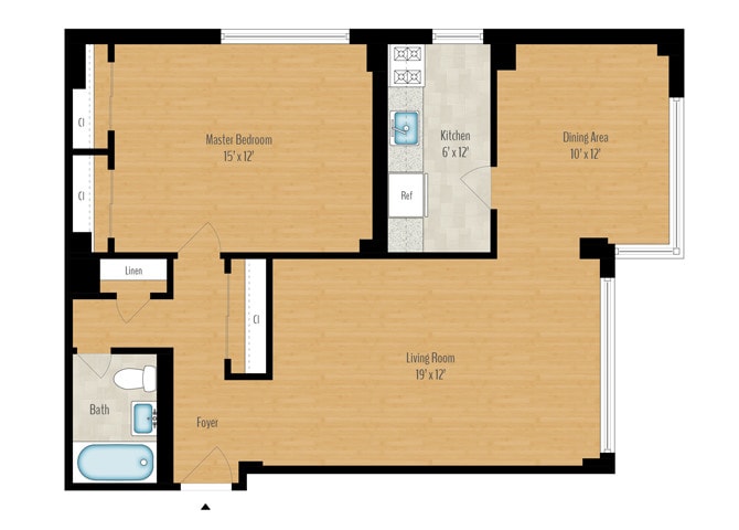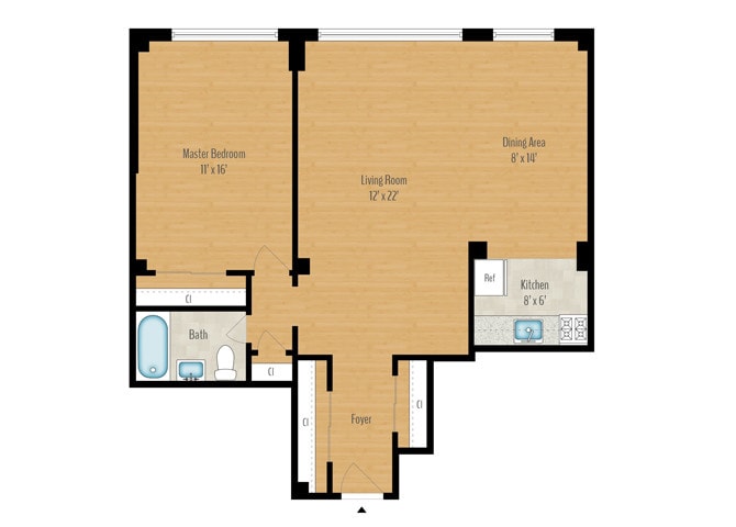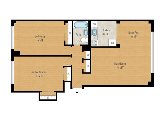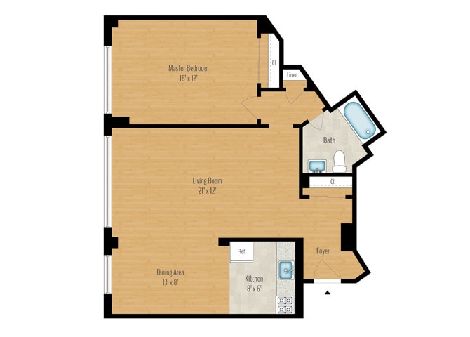 Junior 1-Bedroom - Floorplan 6 Apartment Unit: 0613Apartment Model: Junior 1-Bedroom$2,6001 Bedroom, 1 Bath, 578 sq ftAvailable Now![]()