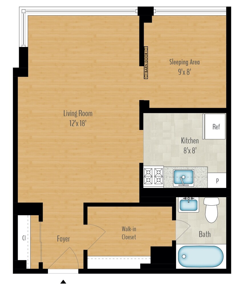 Junior 1-Bedroom - Floorplan 2 ![]()