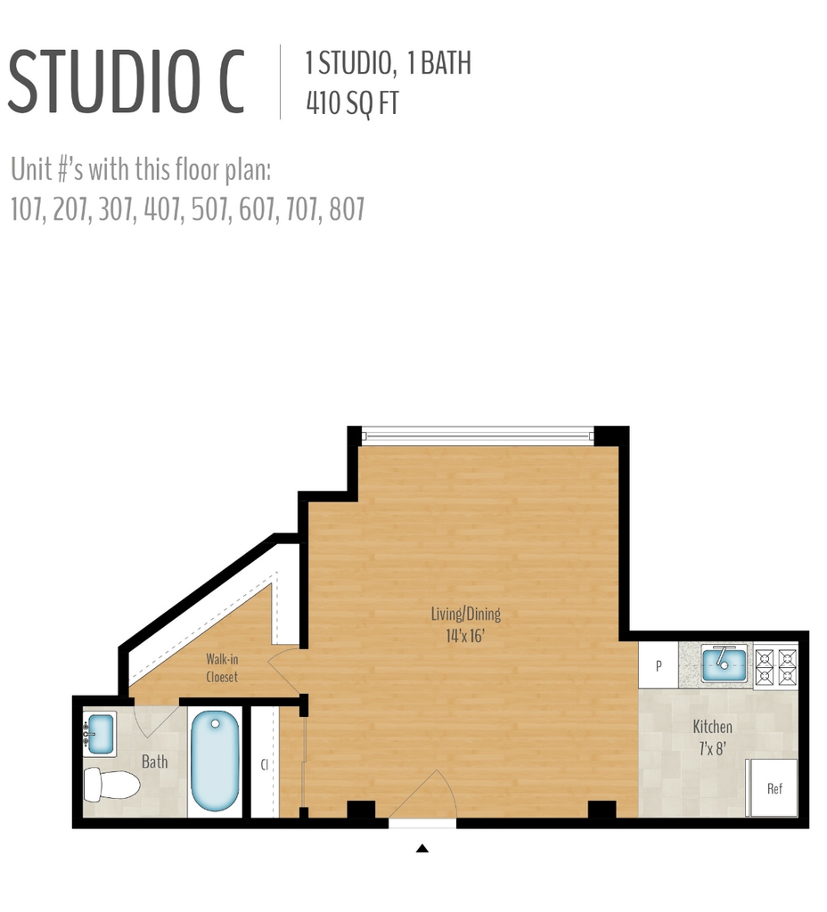 Studio - Floorplan 10 Apartment Unit: 0307Apartment Model: Studio$2,095Studio, 1 Bath, 410 sq ftAvailable Now![]()