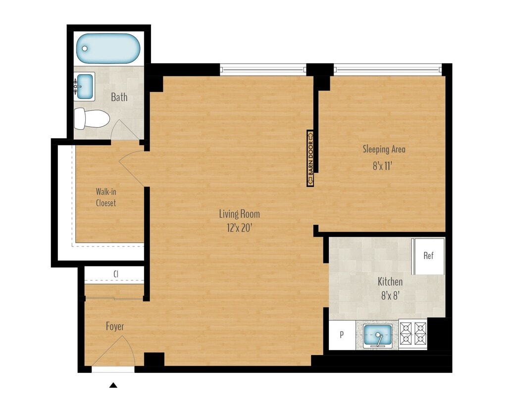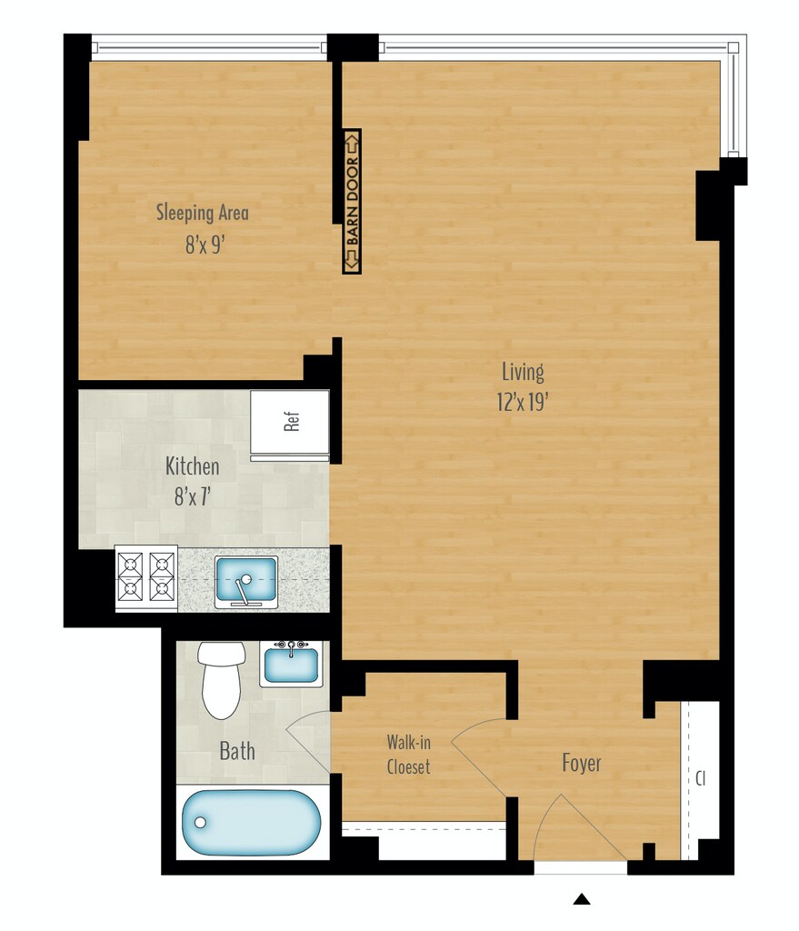 Studio, 1 Bath, 567-578 sq ftAvailable NowModel Gallery