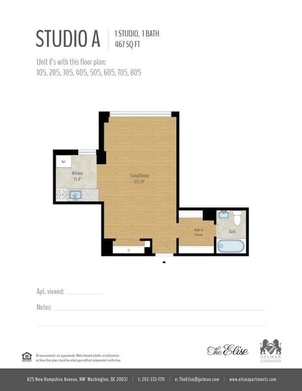 The Elise is located in the Foggy Bottom Neighborhood and 20037 Zip code of Washington, DC. This community is professionally managed by The Gelman Companies