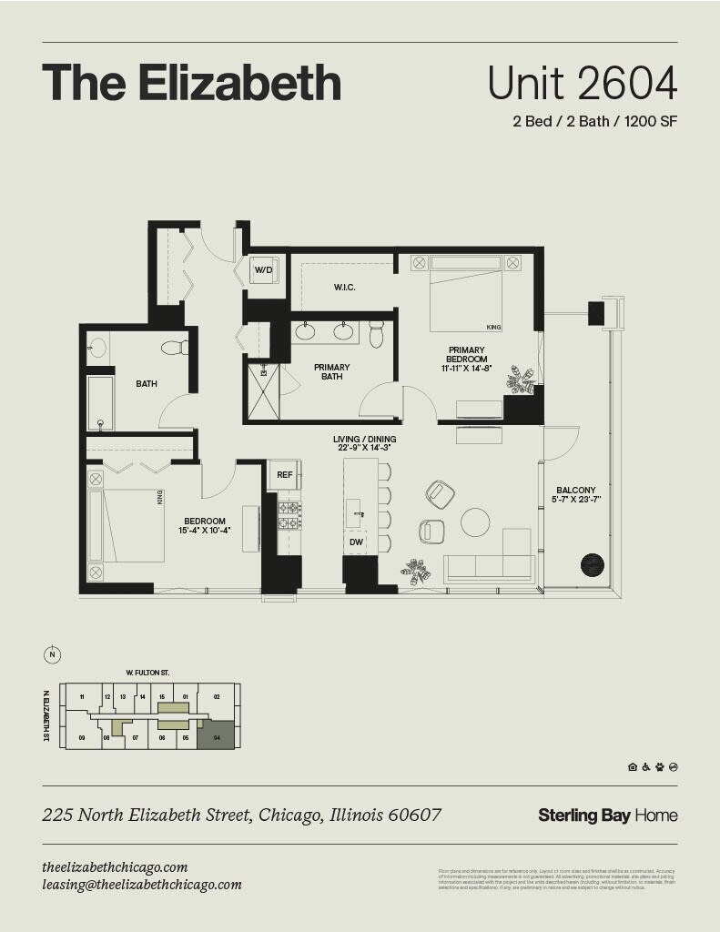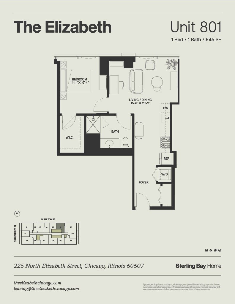 Nestled in the heart of Chicago's vibrant Fulton Market, The Elizabeth Apartments, designed by architect Hartshorne Plunkard, offer a pinnacle of urban sophistication. These spacious residences boast floor-to-ceiling windows, walk-in closets, and pristine waterfall-edge white quartz countertops. Enjoy lavish amenities including a pool with cabanas, collaborative coworking spaces, and a cutting-edge fitness center. Embrace a unique urban lifestyle with on-site pet suite facilities and green spaces. Positioned in the transformed Fulton Market, The Elizabeth stands as a luxurious address where startups, businesses, and culture converge seamlessly. Live, work, and play in this dynamic neighborhood, home to award-winning eateries and thriving businesses. Make The Elizabeth your home and experience unparalleled luxury in the heart of Chicago's thriving Fulton Market. *Lease terms, pricing, and availability are subject to change at any time. Ask our leasing team for more details.