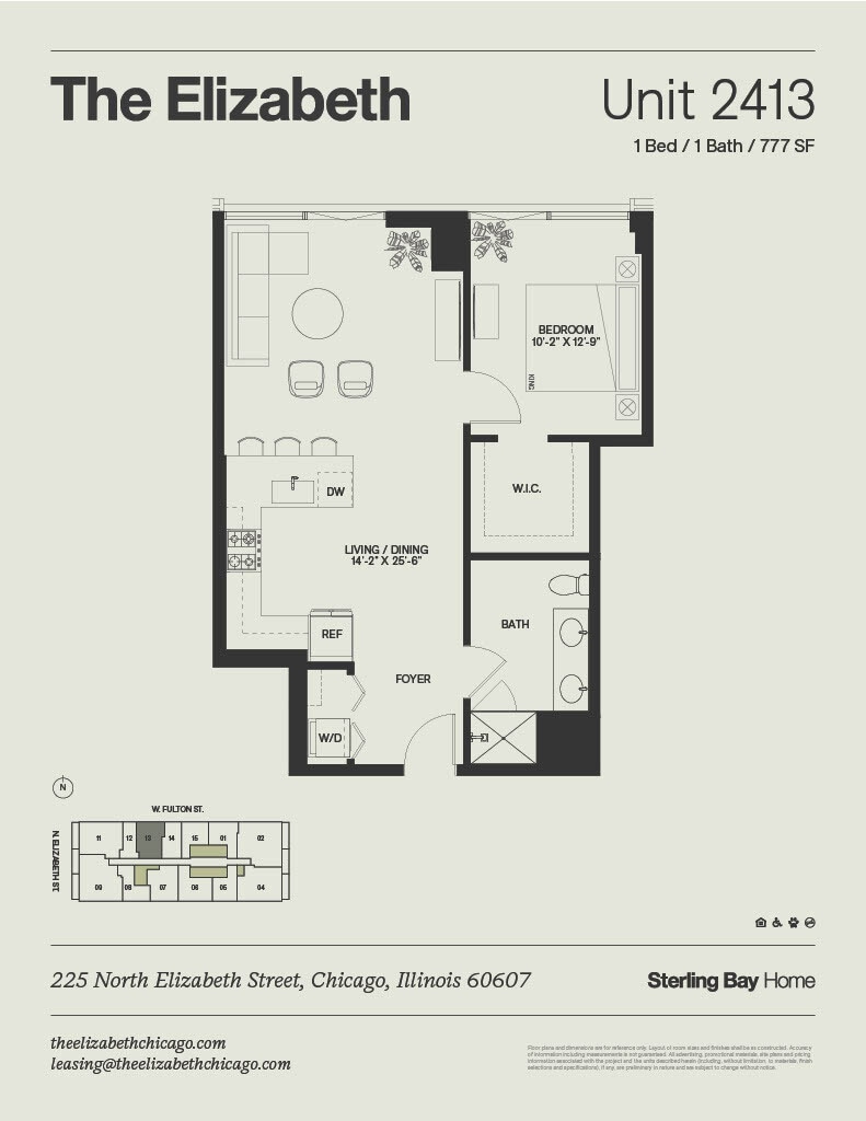 The Elizabeth Chicago is located in the Fulton Market Neighborhood and 60607 Zip code of Chicago, IL. This community is professionally managed by Luxury Living Chicago Realty
