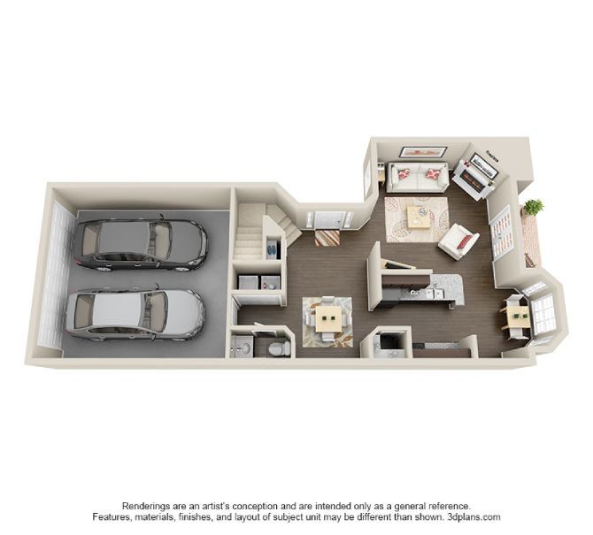 Plaza_C1 - Floorplan 1 Floor plans are artist's rendering. All dimensions are approximate. Actual product and specifications may vary in dimension or detail. Not all features are available in every rental home. Please see a representative for details.