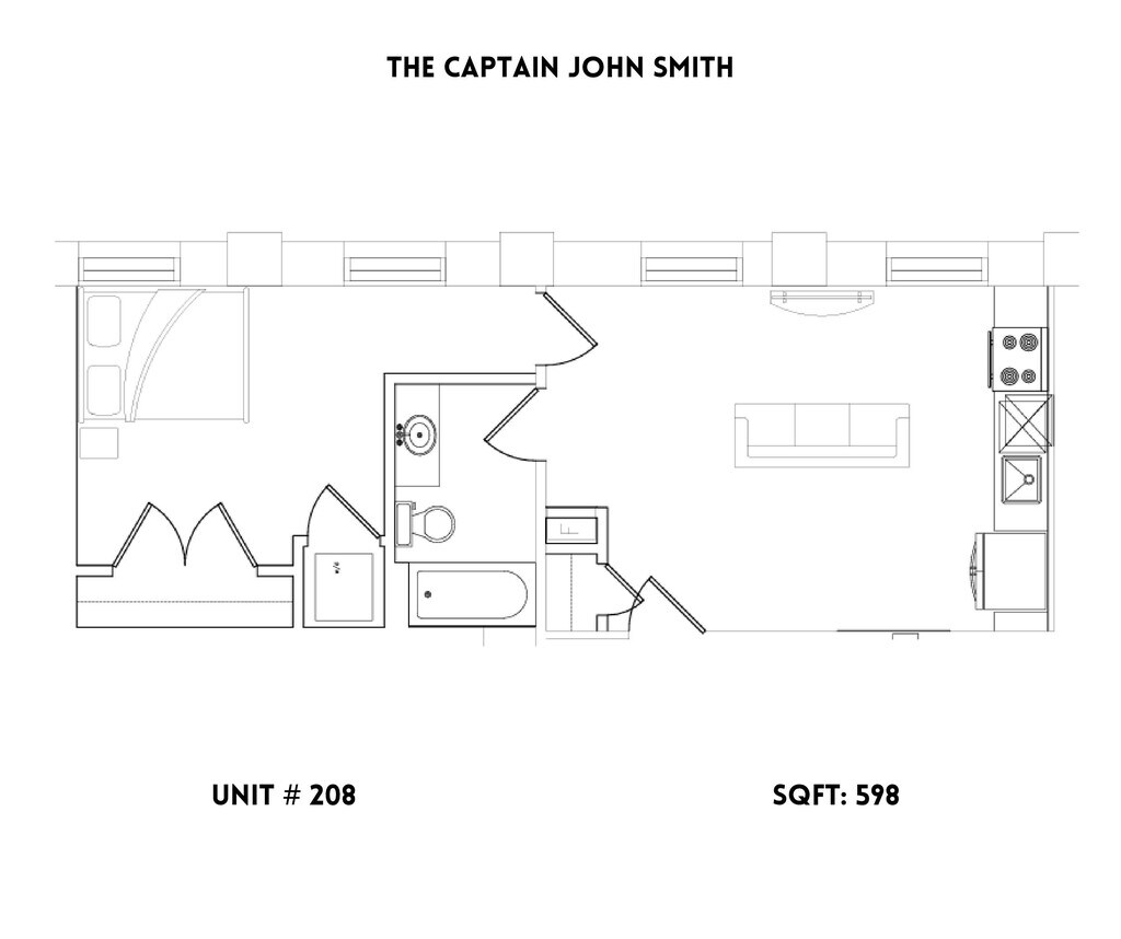 Apartment Model: The Captain John Smith$1,4751 Bedroom, 1 Bath, 598 sq ftAvailable NowThe Captain John Smith - Floorplan 1 The Bennett