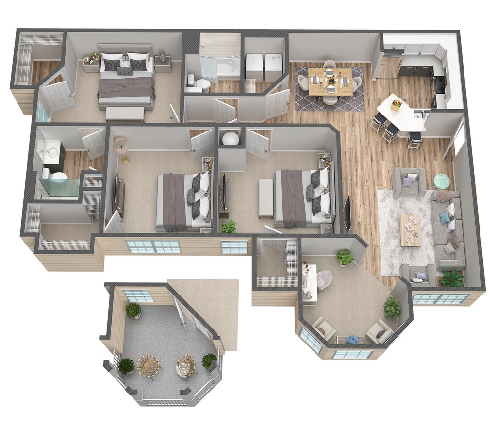 2 Beds, 2 Baths, 1307 sq ftAvailable NowLargest 2 BedroomThis is the largest 2 Bedroom at this PropertyModel Gallery