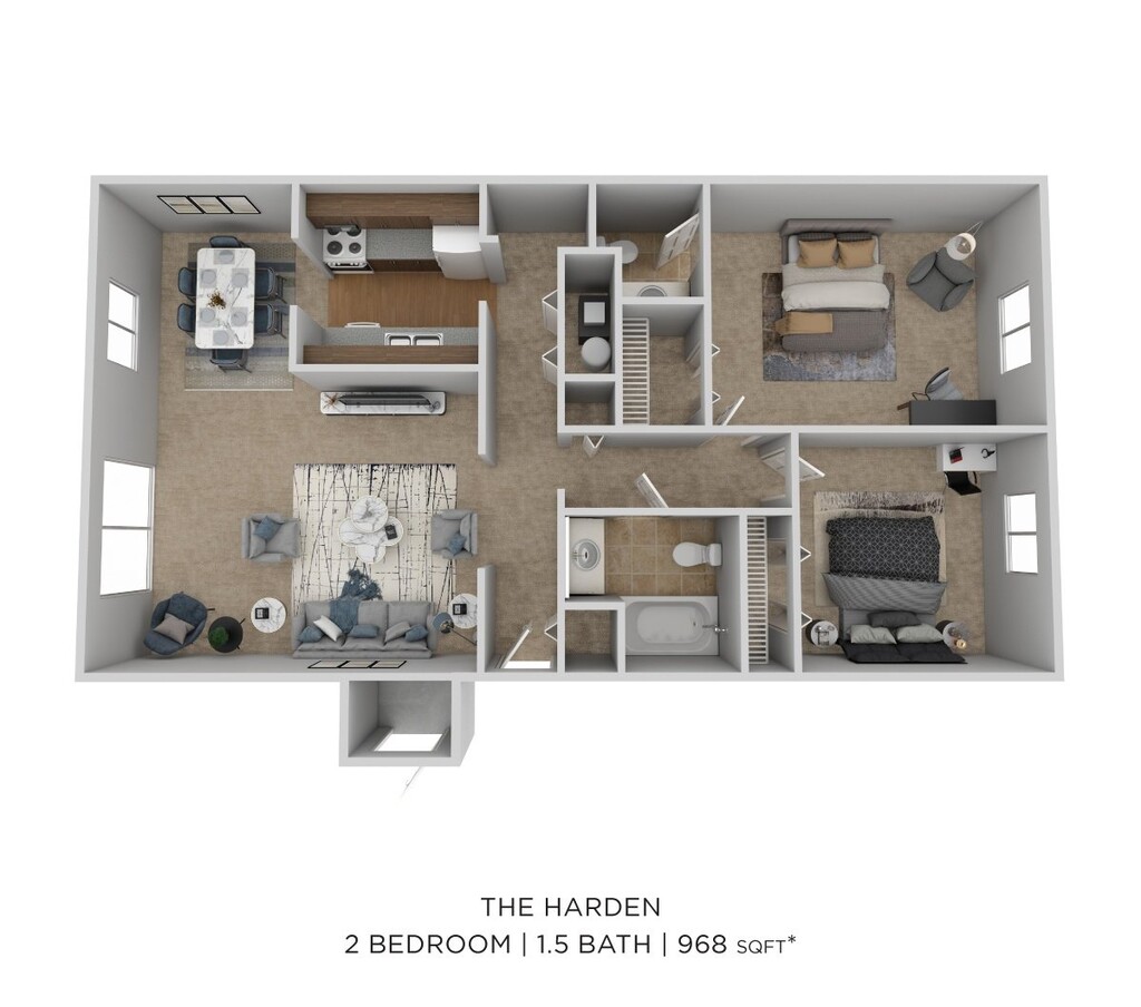 2 Beds, 1.5 Baths, 968 sq ftAvailable NowModel Gallery