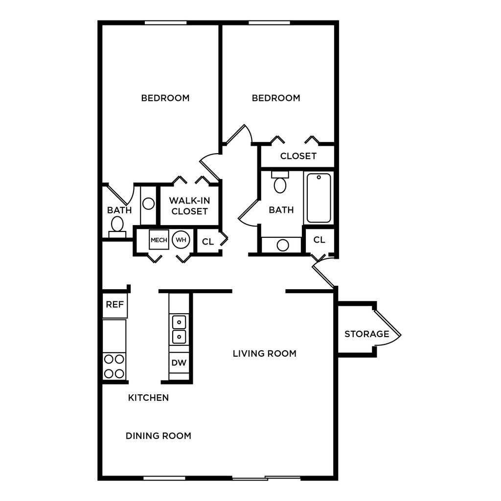 Apartment Model: Two Bedroom 1.5 BathFrom $1,3052 Bedroom, 1.5 Bath, 968 sq ftAvailable Now![]()