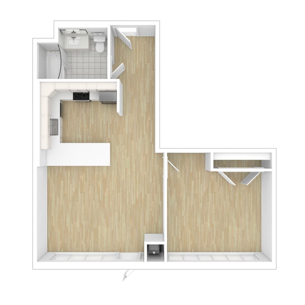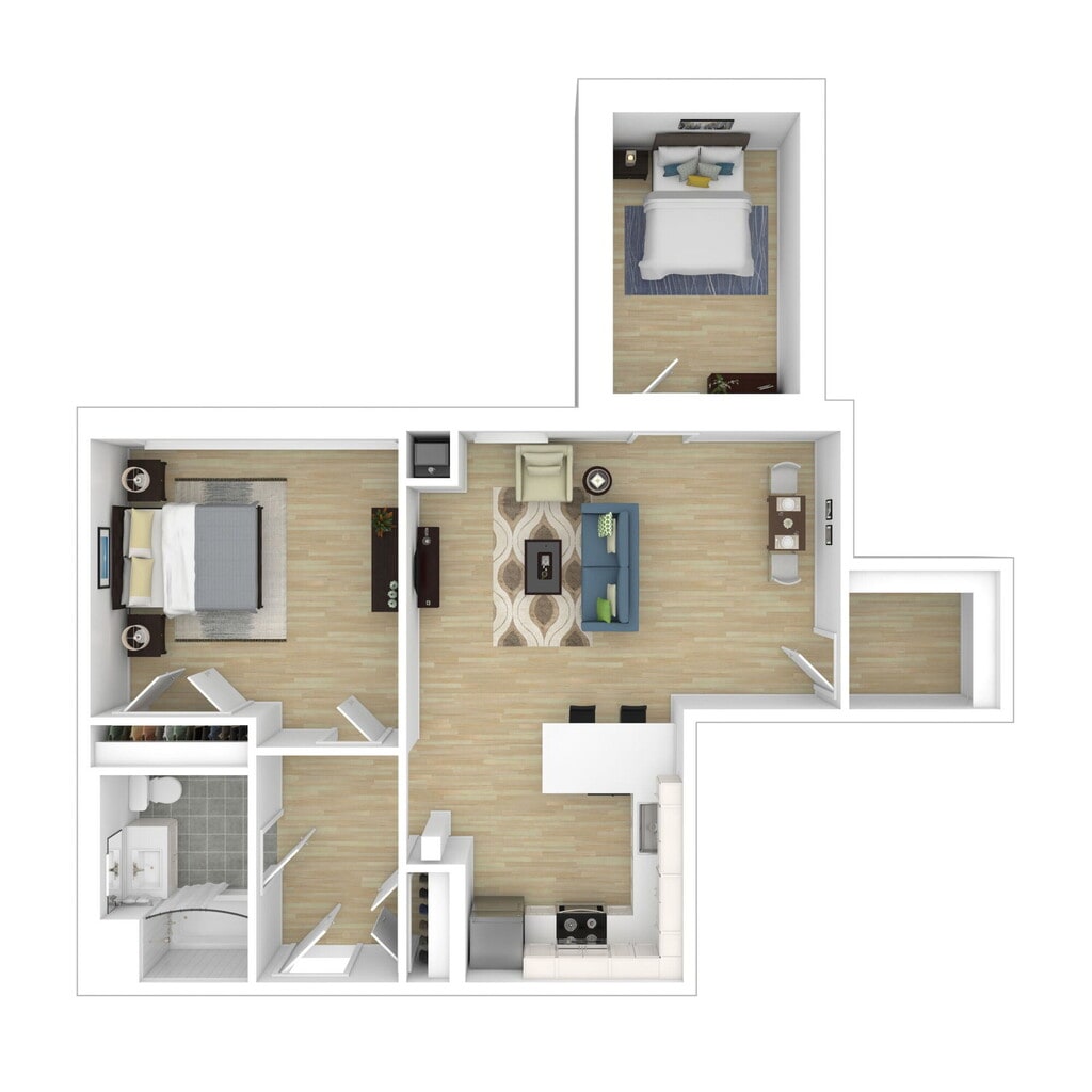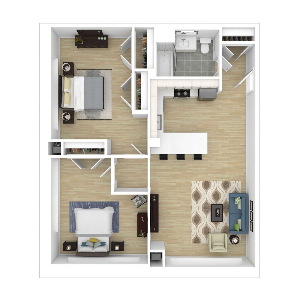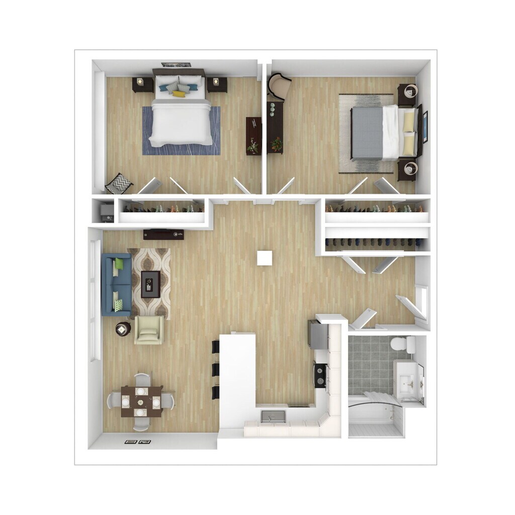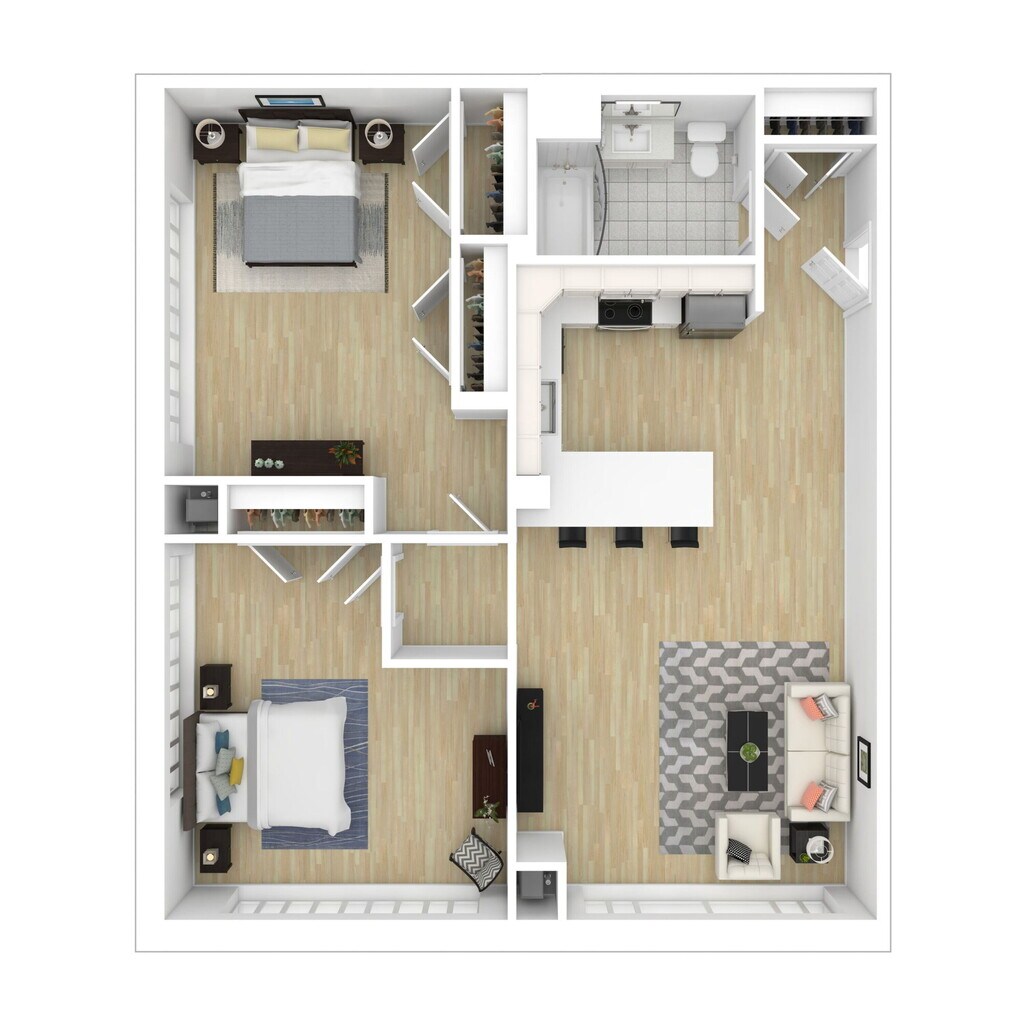 2 Beds, 1 Bath, 841-1063 sq ftModel Gallery