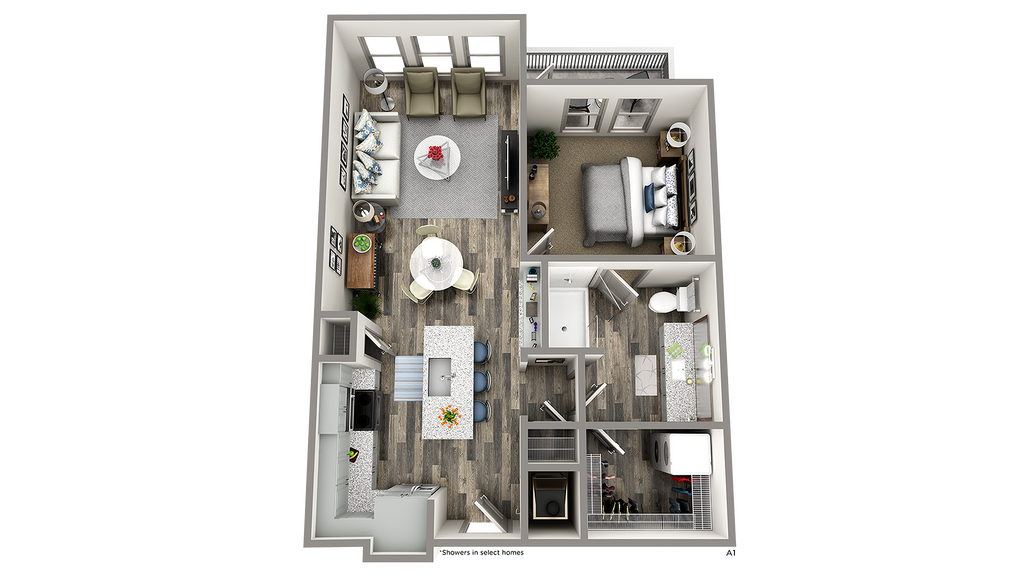 Apartment Model: A1From $1,6001 Bedroom, 1 Bath, 785 sq ftAvailable February 2, 2026![]()