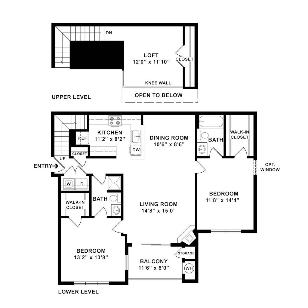 Ashford w/ Loft - Floorplan 2 Apartment Unit: 12281BApartment Model: Ashford w/ Loft$2,4301 Bedroom, 1 Bath, 1001 sq ftAvailable March 24, 20262 Bedrooms