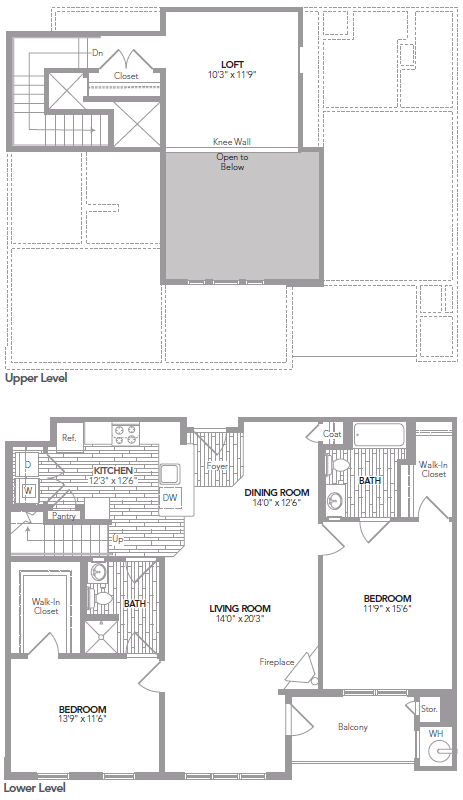 A-LOFT - Floorplan 2 Apartment Unit: 404Apartment Model: A-LOFT1 Bedroom, 1 Bath, 1044 sq ftAvailable April 18, 2026Floorplan A-2