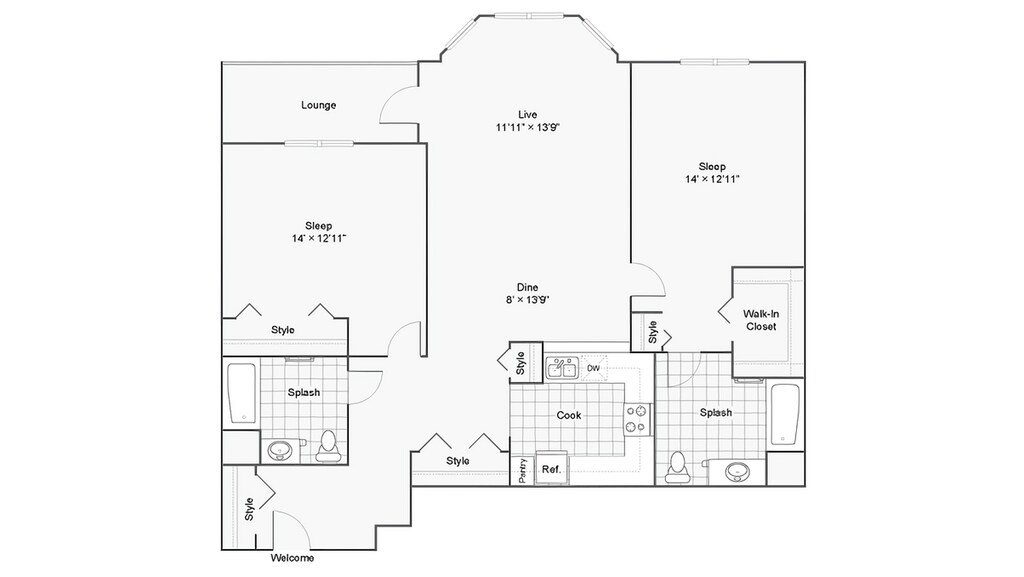One Bedroom - Floorplan 10 Apartment Unit: 1-122Apartment Model: One Bedroom$2,4401 Bedroom, 1 Bath, 719 sq ftAvailable Now![]()