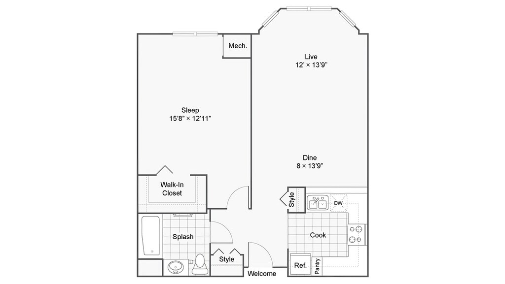1 Bed, 1 Bath, 569 sq ftTotal Monthly PriceAvailable January 14, 2026Model Gallery