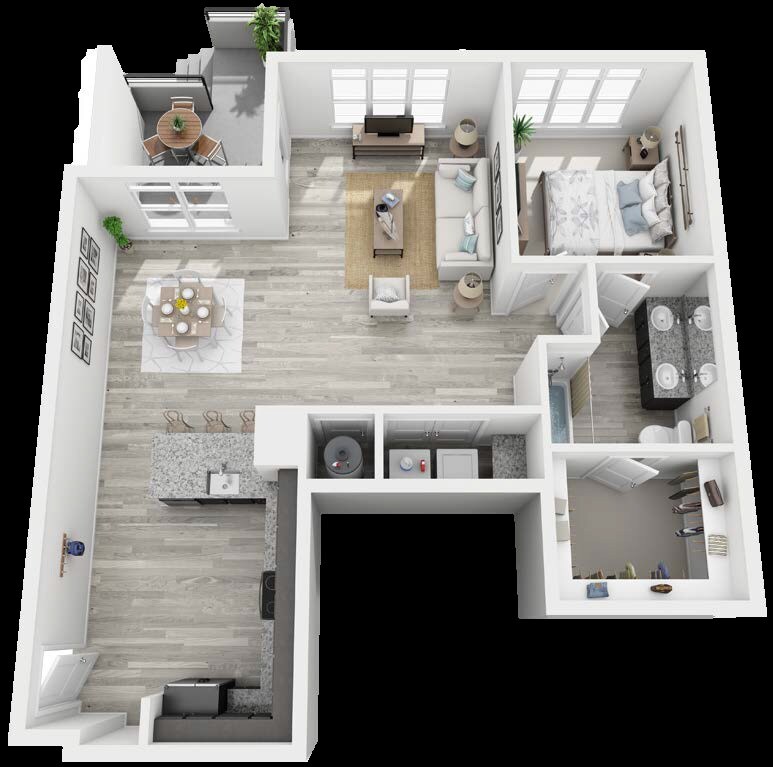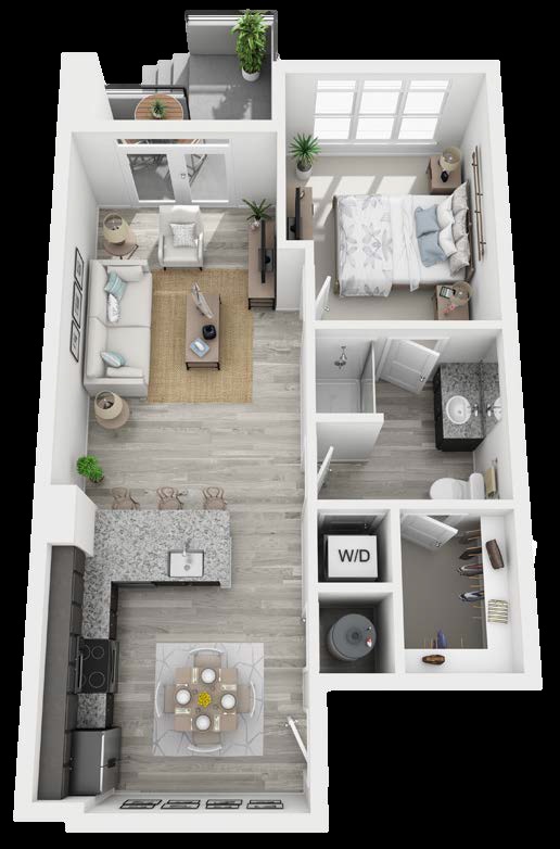 1 Bed, 1 Bath, 605 sq ftModel Gallery
