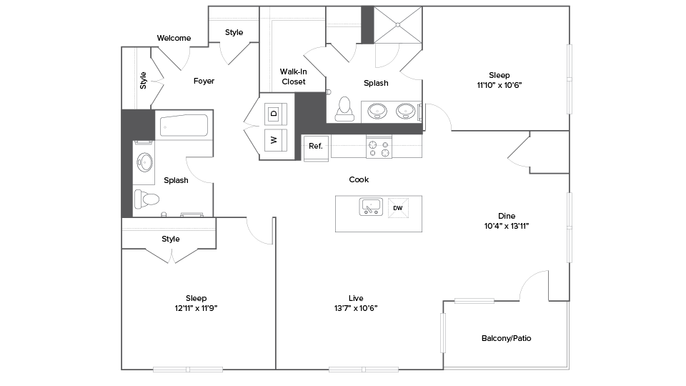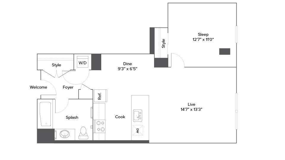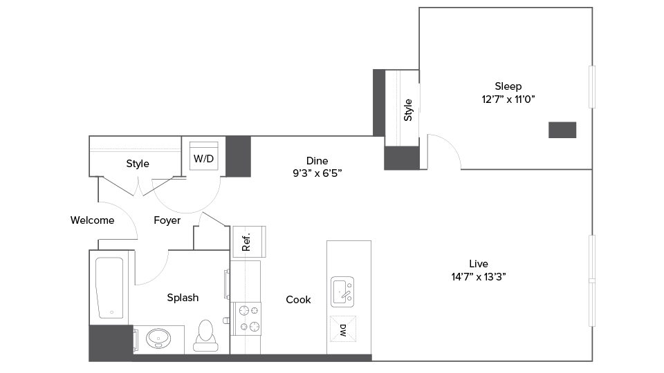 1 Bed, 1 Bath, 676 sq ftAvailable January 23, 2026Model Gallery